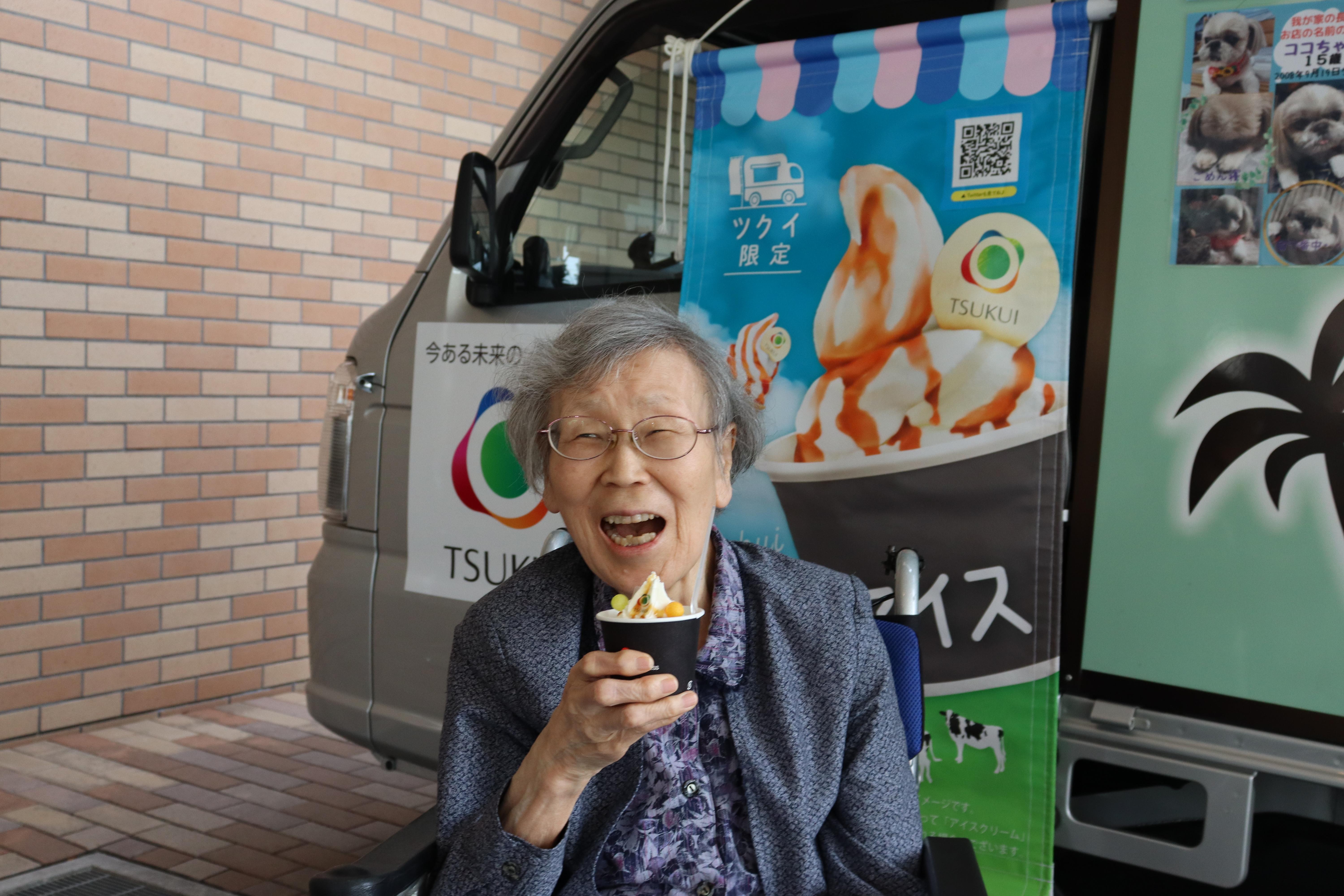 地域のキッチンカーとコラボ企画で、ツクイアイスと称したソフトクリームを楽しんでいただくイベントを3日・4日の2日間行いました。