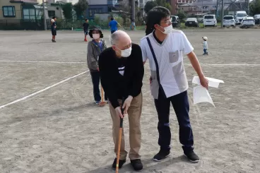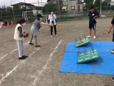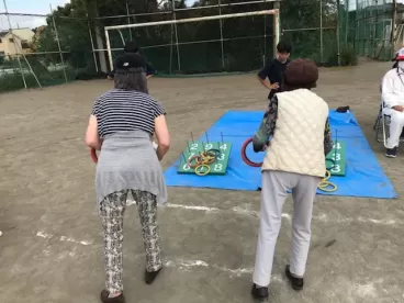 今日は天気にも恵まれ、体を動かすにはちょうどよい気温の中、輪投げ・グランドゴルフ・ドッチビー、キックターゲットなど、地域の方と一緒に楽しんできました。