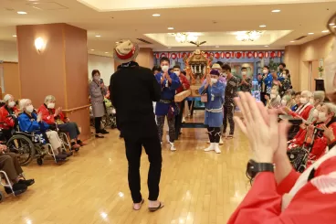 お客様もご家族もスタッフも皆で、「わっしょい!わっしょい!」と大盛り上がりでした。