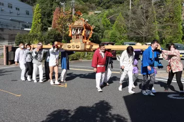 途中からスタッフも担がせていただきましたが、皆一同に神輿の重さにぐったりしていました。貴重な経験をありがとうございました。
