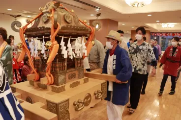 立派な神輿と威勢のよい掛け声に、お客様から大歓声が上がりました。