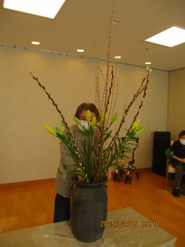 お客様のイメージにより近いものにするため、まずはご本人にしっかりとヒアリングし、当施設がお世話になっている花屋さんに花材の依頼をしたり、ご家族にも意見をお聞きして、いよいよ2/6の当日を迎えました。