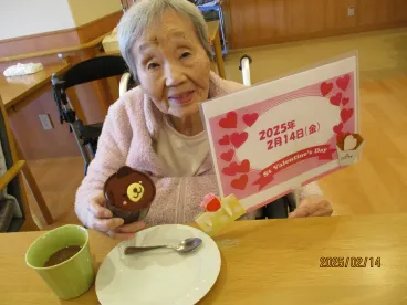 ツクイ・サンシャイン町田東館でのバレンタインは、全てのお客様にチョコレートケーキを召し上がって頂きました。