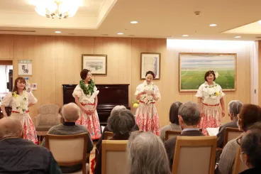 フラダンスはゆったりと踊るダンスではありますが、ひとつひとつの踊りに意味を込めて作られる振り付けが多く、運動にもなりつつ頭の体操にもなりそうですね!