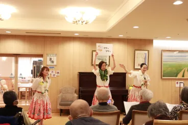 美女5名にご来設いただき、ハワイアンな衣装を着て南国雰囲気たっぷりに踊ってくださいました。