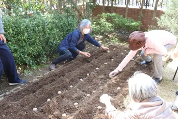 ご入居以前から庭の手入れや花の栽培など、土いじりがお好きなお客様をお誘いして手伝って頂きました。
