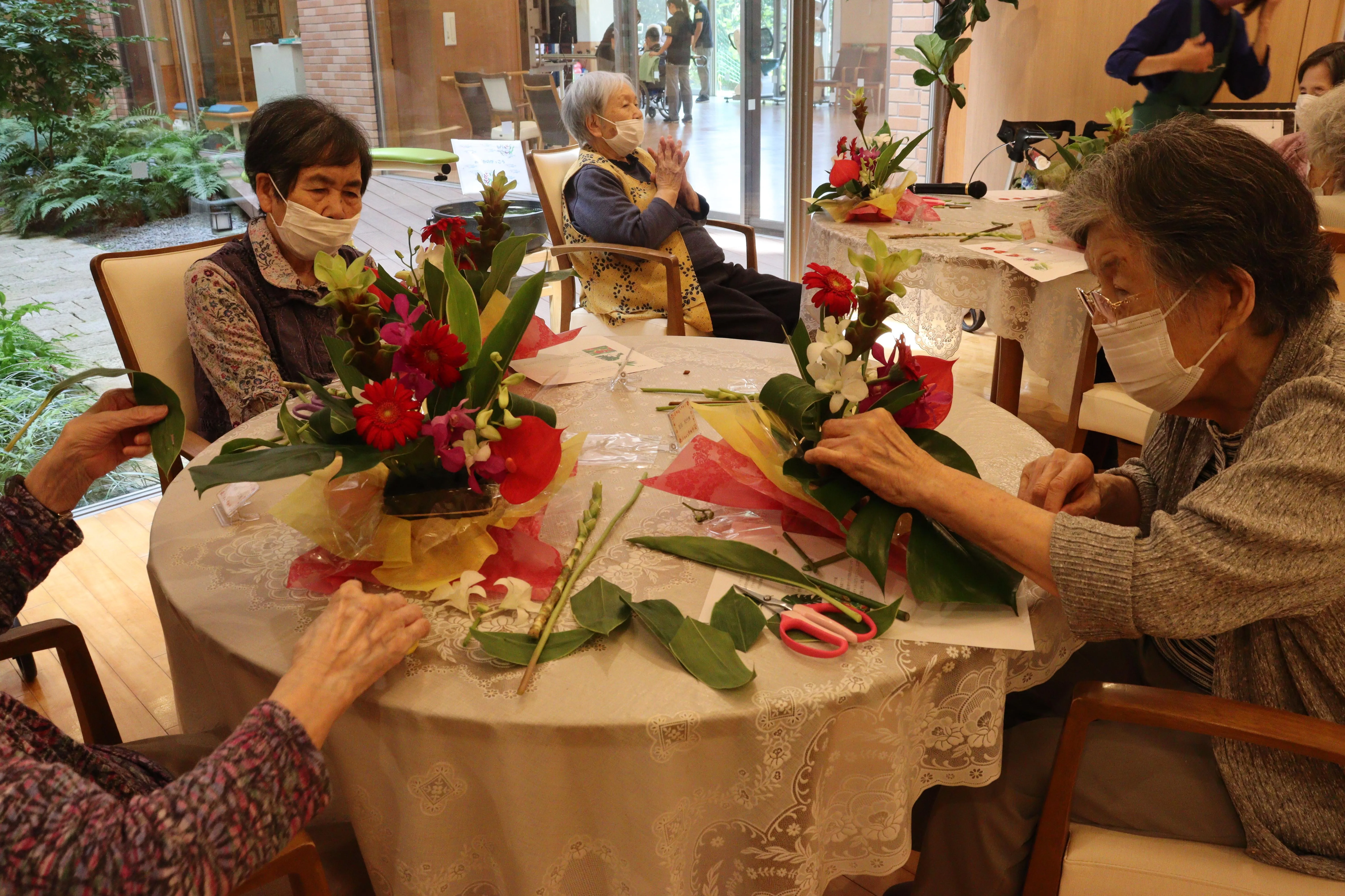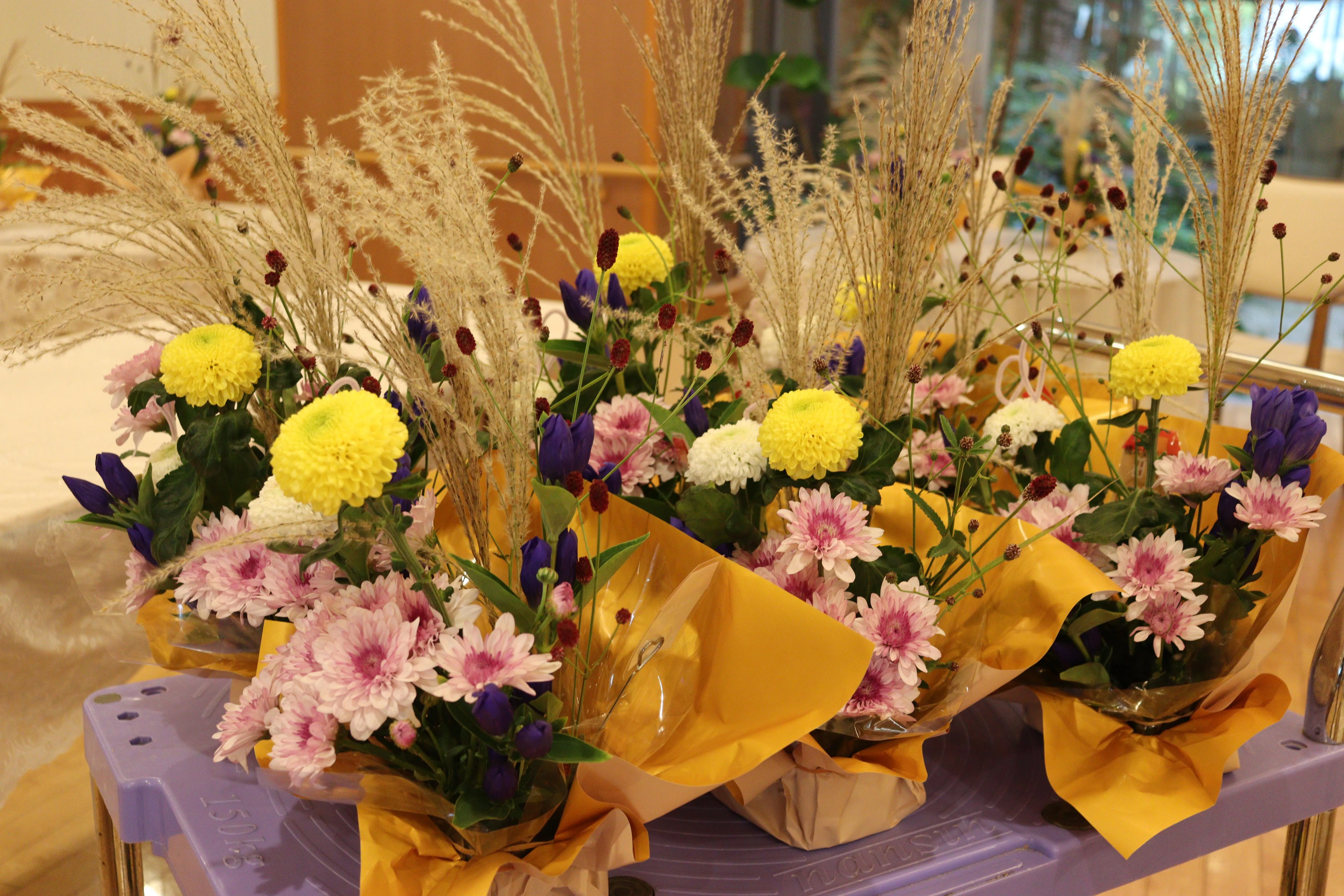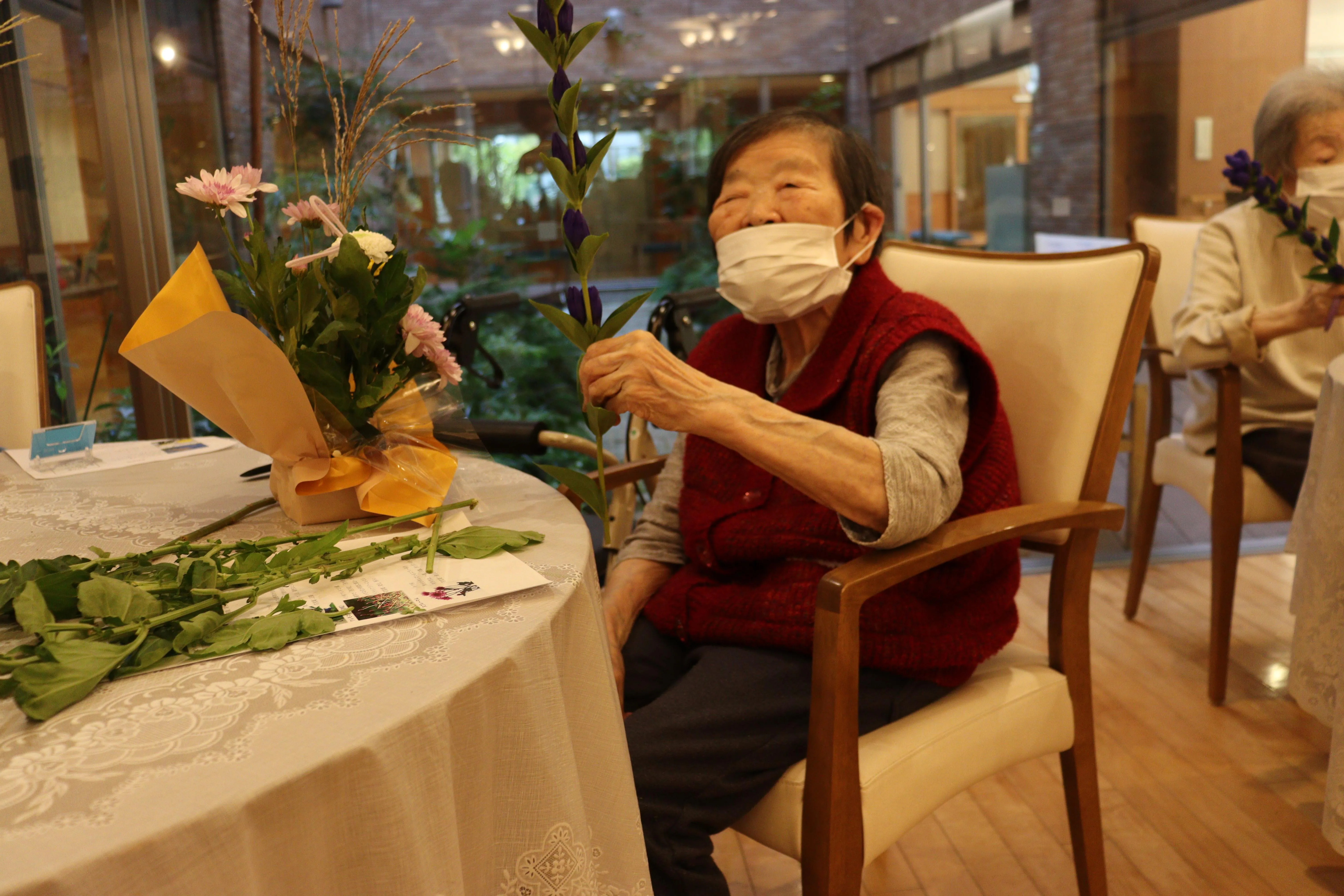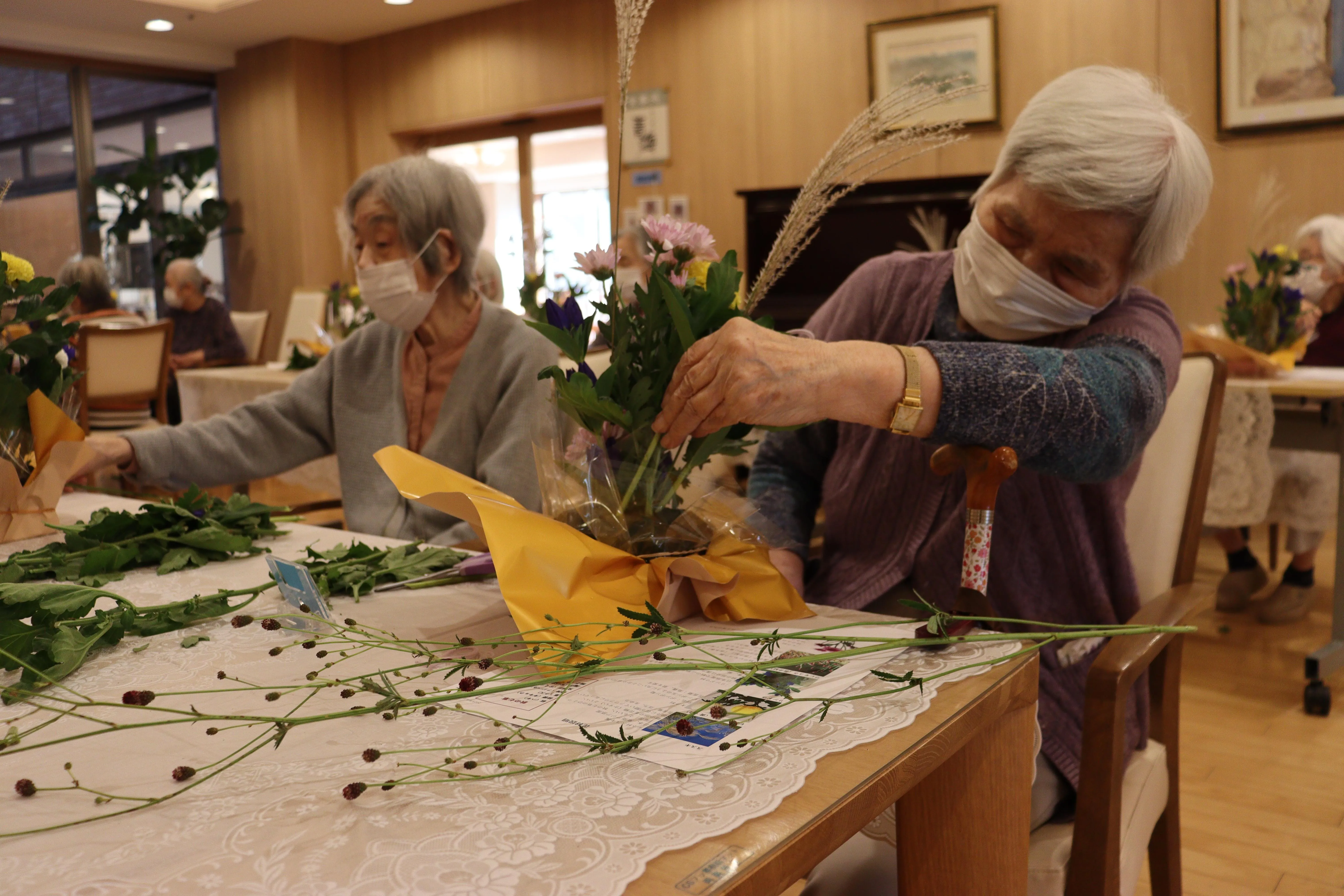 仕上げたあとは、皆様お部屋に飾って楽しんでおられます。毎月季節感のあるお花がお部屋にあるのも嬉しいですね!