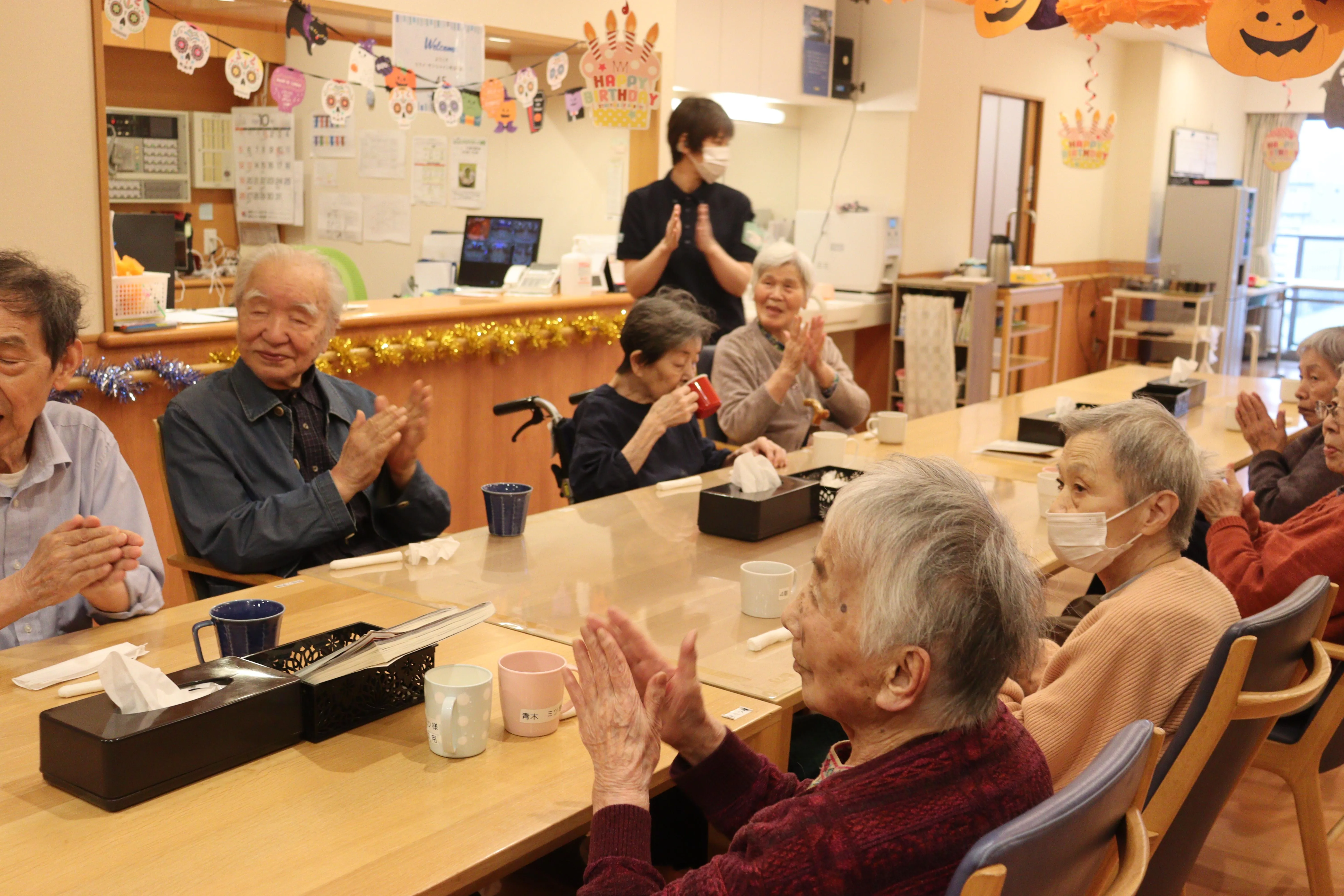 ツクイ・サンシャイン町田東館では、毎月月末に行っている誕生日会をより皆様で楽しんで頂きたいと、10月よりケーキバイキングを始めました!たくさん並んだスイーツを前に、皆様の笑顔が弾けます!!!