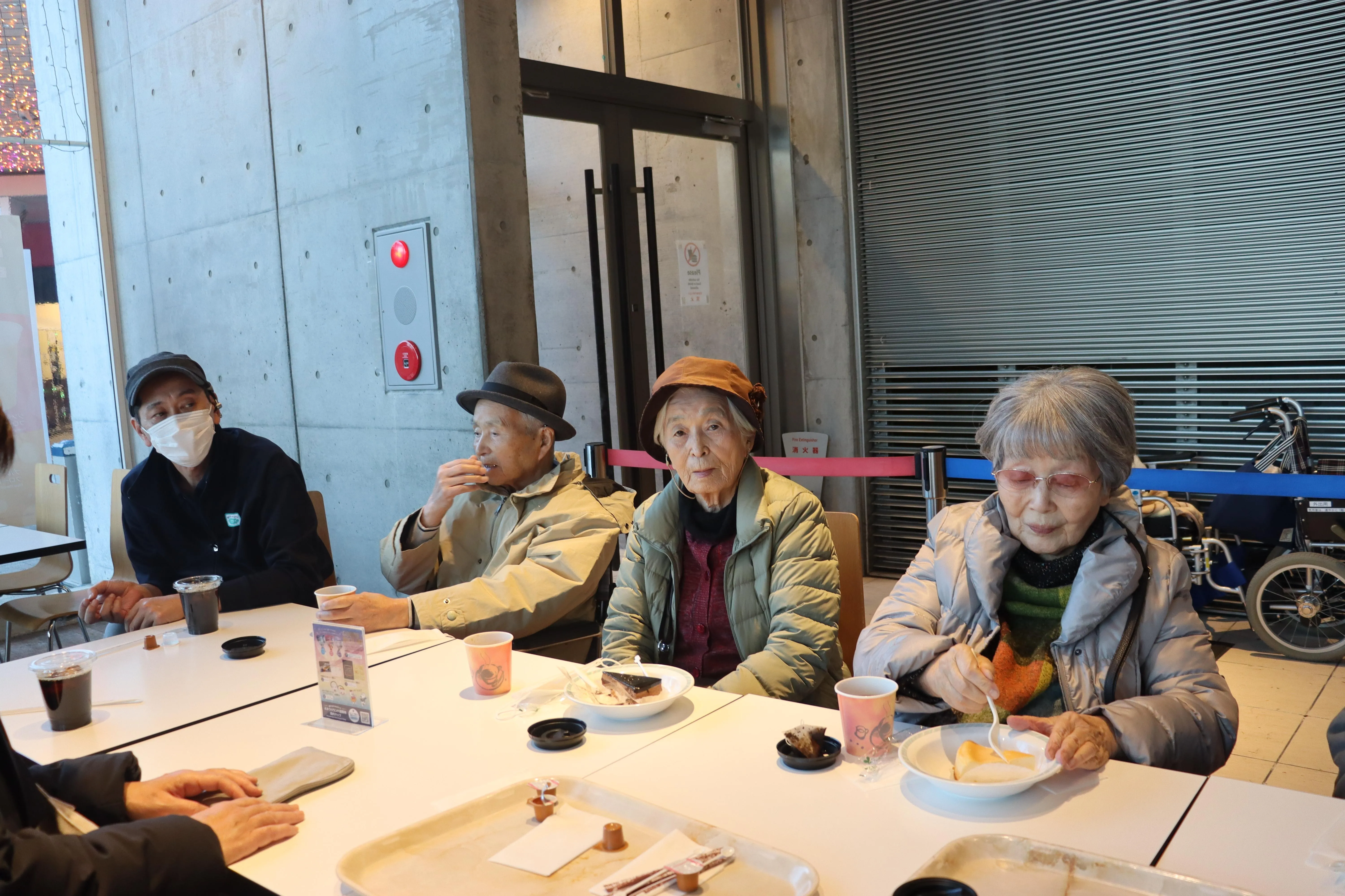 ショーが始まる前に、お客様とティータイム。いつもの食堂のメンバーと違って、新鮮な感じがしますね!この日ばかりは、お好きなものを注文していただきました。