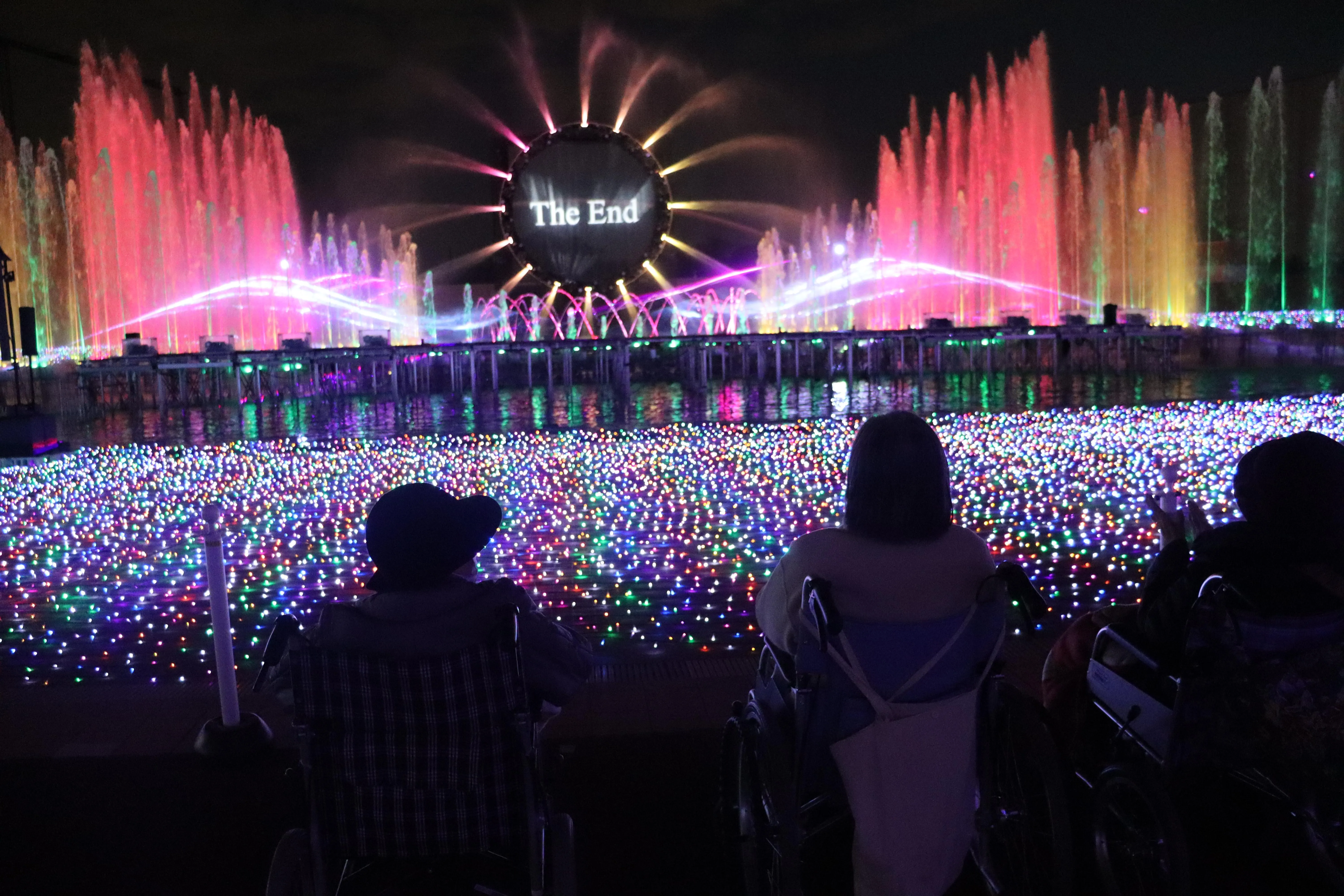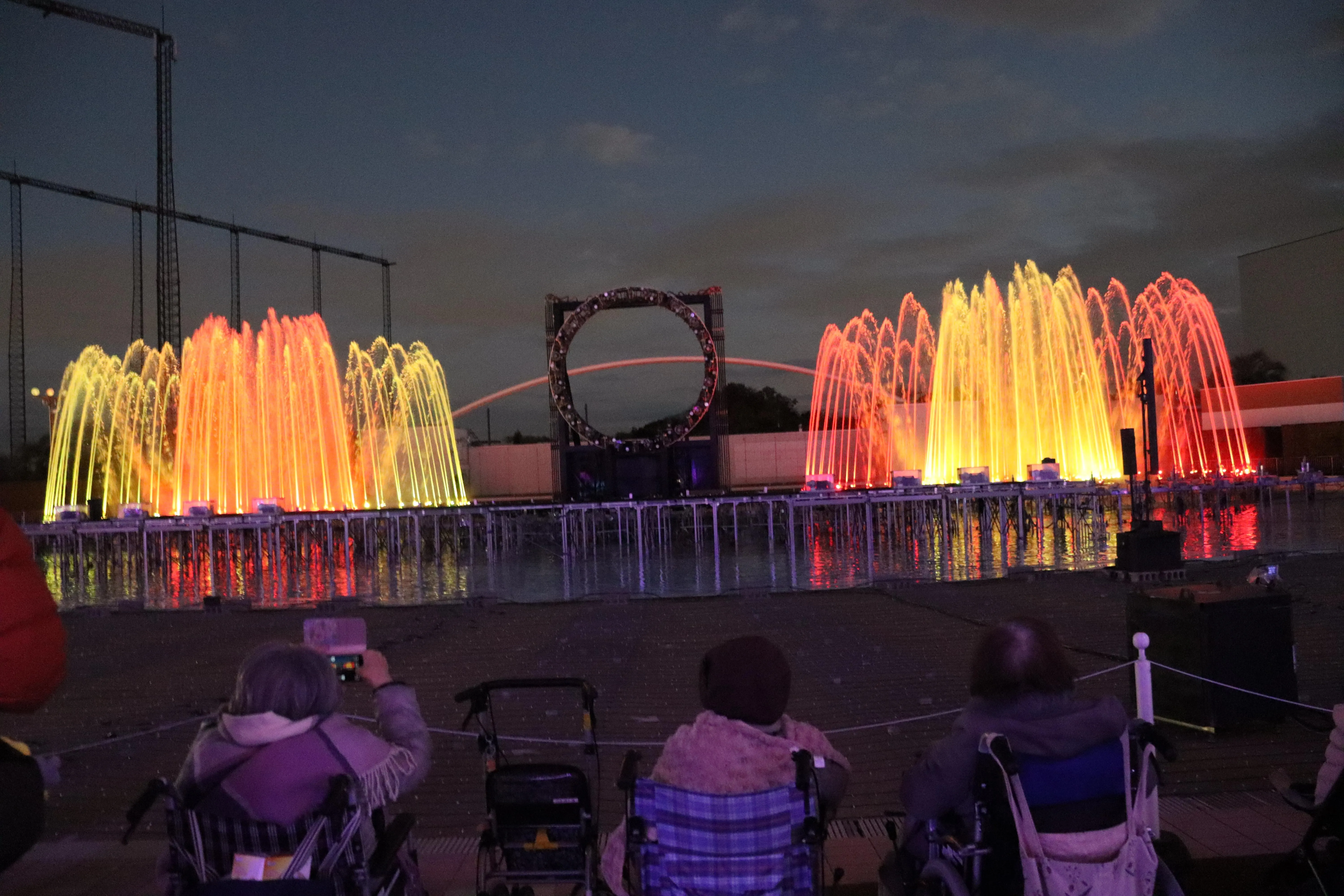 レーザーと炎の演出が見どころの、「ラ・フォンテーヌ」というショーの始まりです。フォンテーヌとは、泉や噴水を意味するフランス語から来ているそうです。お客様もうっとり。あっという間に終了してしまいました。途中途中で記念撮影をしました。どこをとっても、映え写真が出来上がりますね!