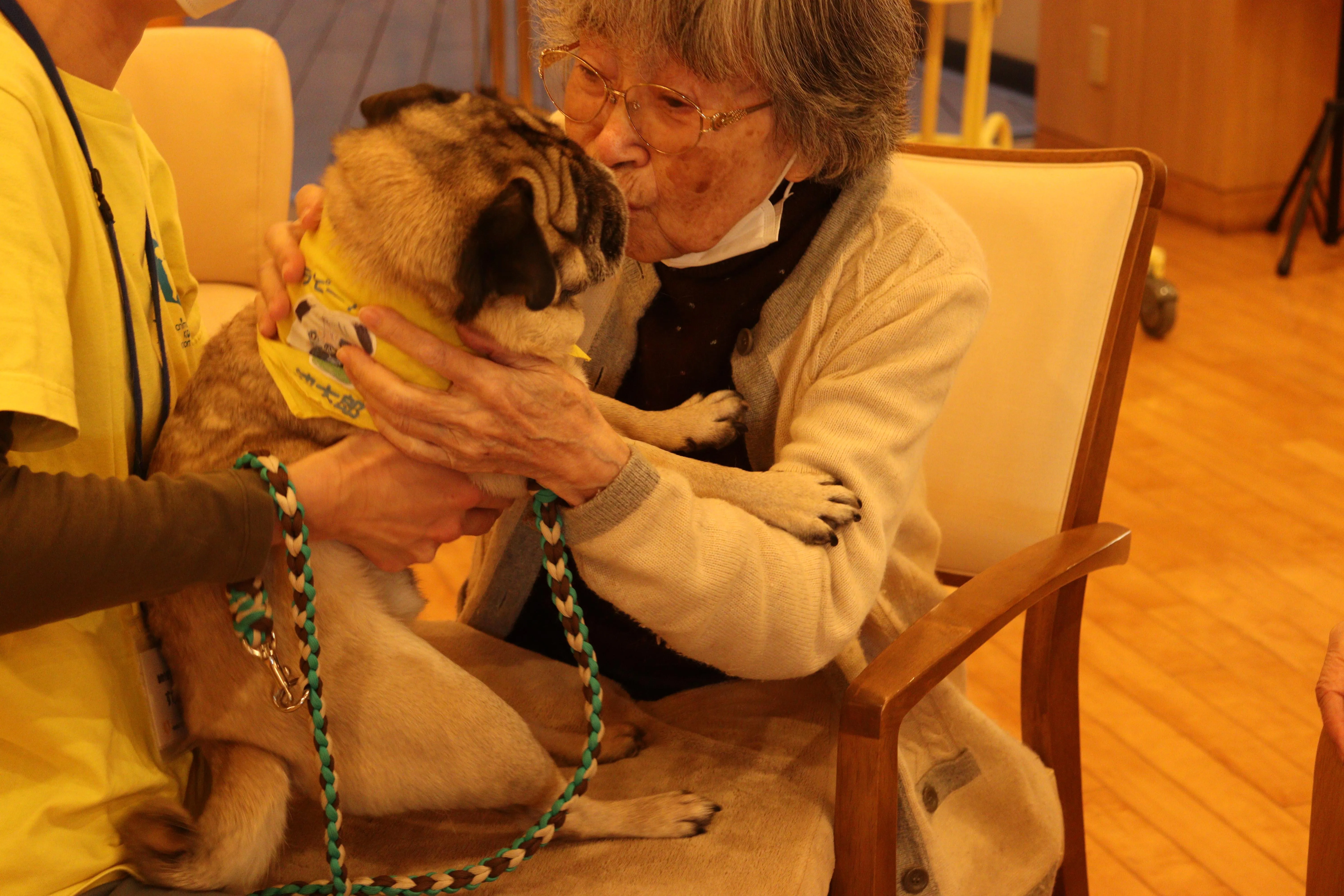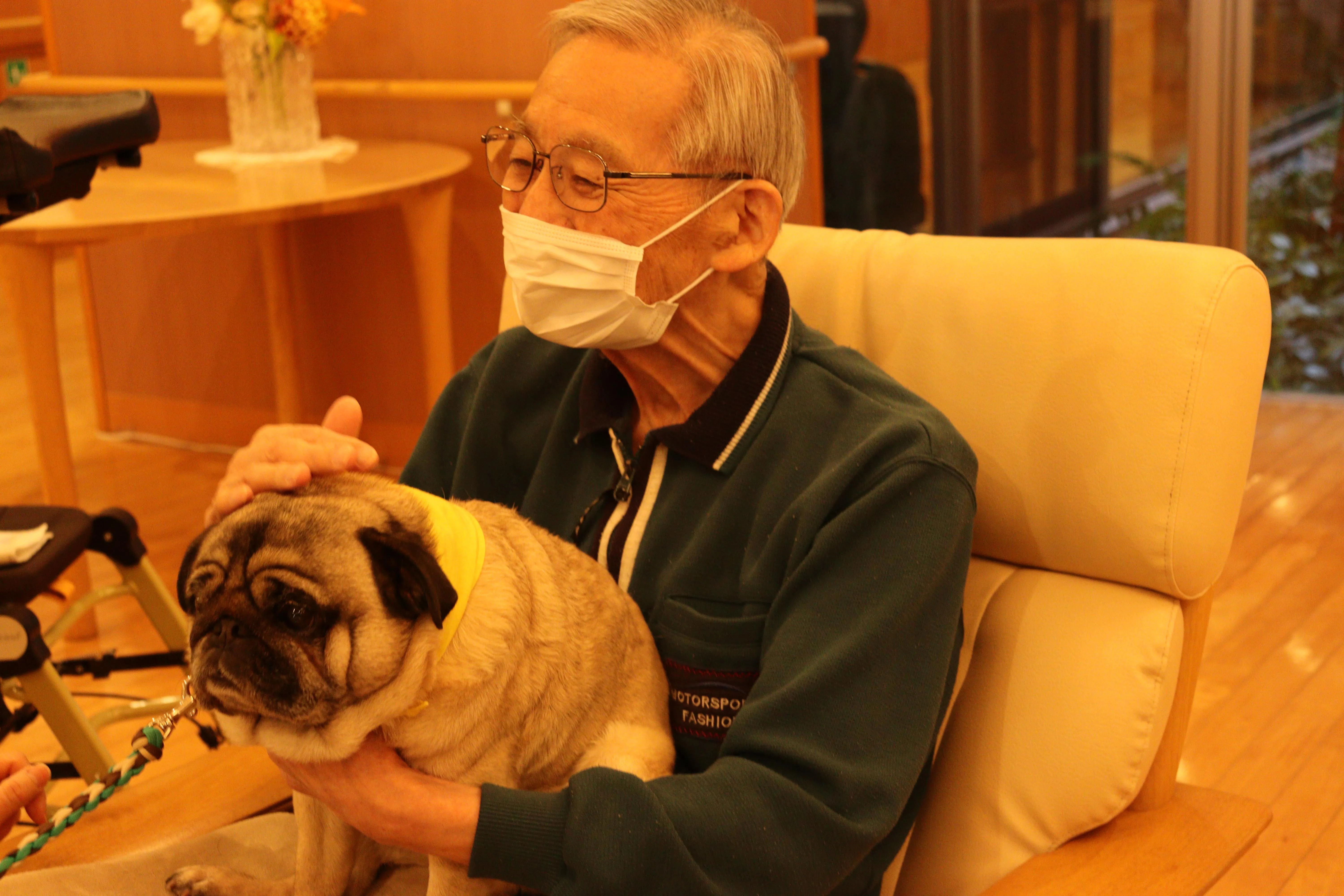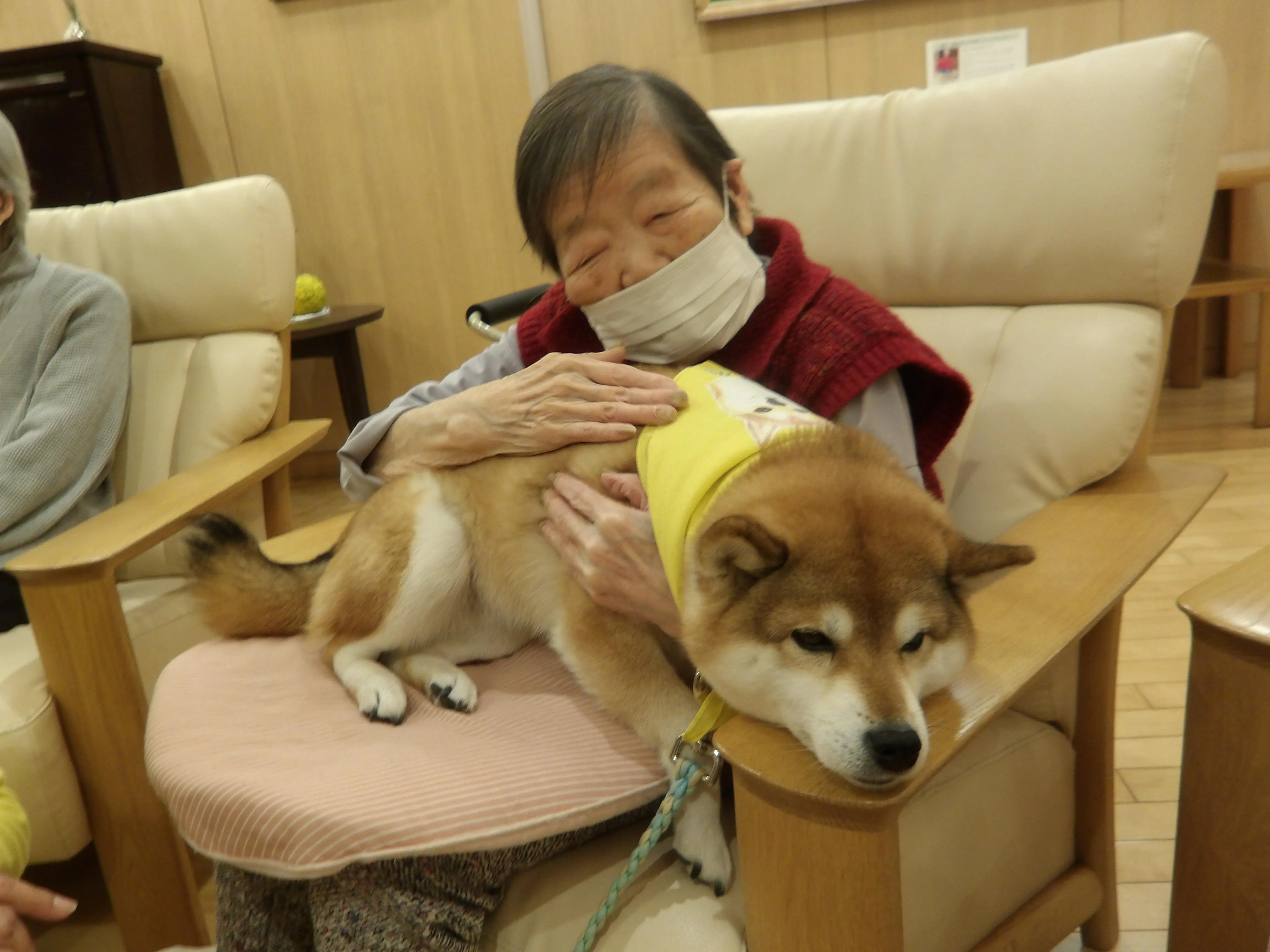 毎月のお楽しみイベント、アニマルセラピー。ワクワクそわそわ待ちきれず、開始の時間前に会場に来られるお客様がいるほどです。ツクイ・サンシャイン町田東館のアニマルセラピーはワンちゃんがやってきてくれますが、アニマルセラピーに犬が選ばれるのは人の言葉を理解する能力が高く、人と気持ちを通じ合わせることができるからだそうです。動物と気持ちを通じ合わせることで、心のケアにも繋がりやすいそうですよ。昨年12月と1月のご様子をご覧ください!