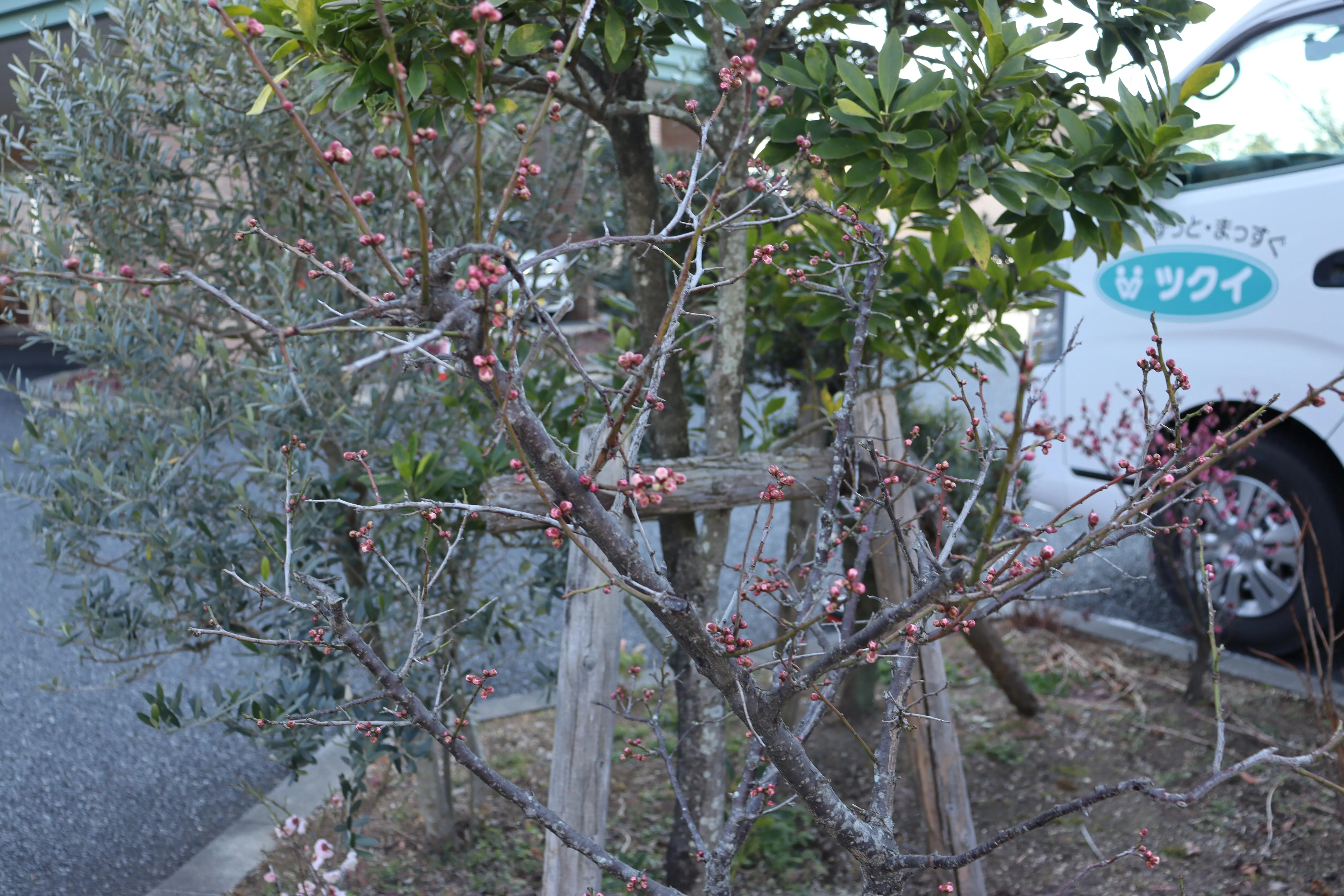 1本の木から、白とピンクの2色のお花が咲いています。「すごいわね~。こんなの初めて見たわ」とお客様。本格的な春はもうそこまで。今度は、桜が咲くころのお散歩をお約束致しました。