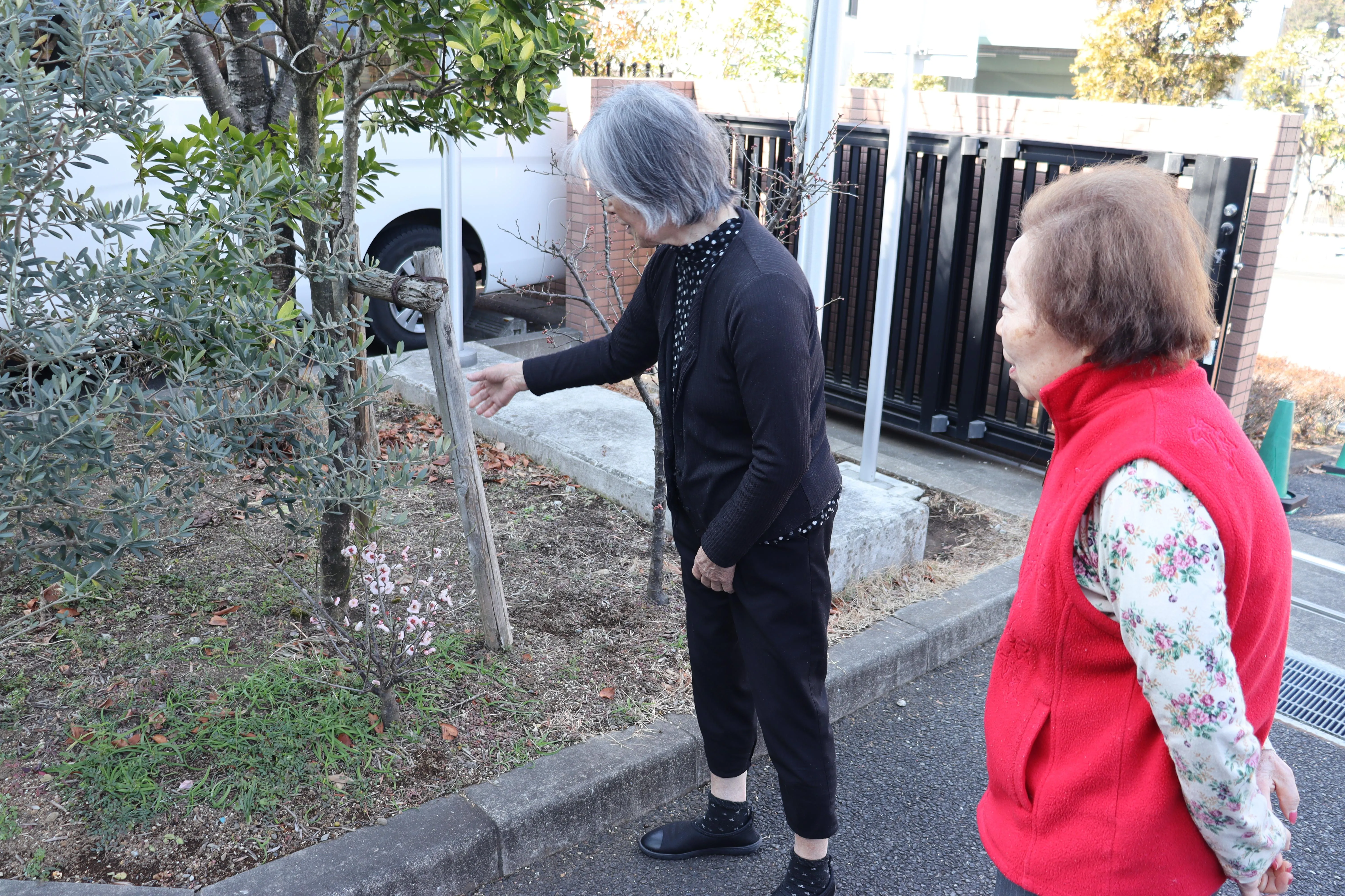 先日都心で積雪がありましたが、春は着実にそこまでやってきています。ツクイ・サンシャイン町田東館の敷地内には、そんな兆しがあちこちに・・・・。お天気の良いとある日、お客様と敷地内をお散歩致しました。