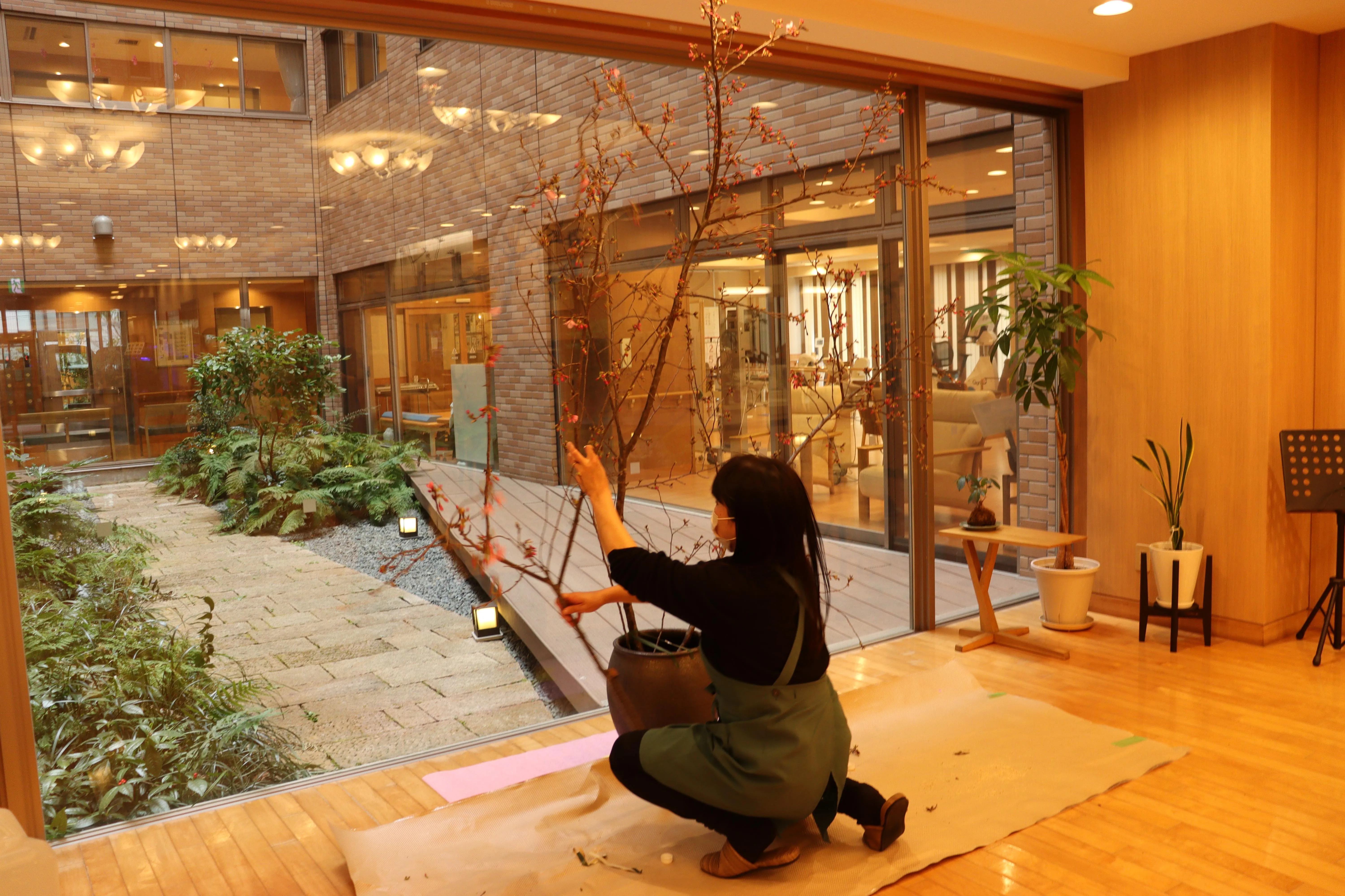 ツクイ・サンシャイン町田東館のエントランスに、見事な桜が飾られました。これからしばらくの間、お客様の目や心を癒してくれるスポットになります。この桜が出来上がるまでをご紹介致します!
