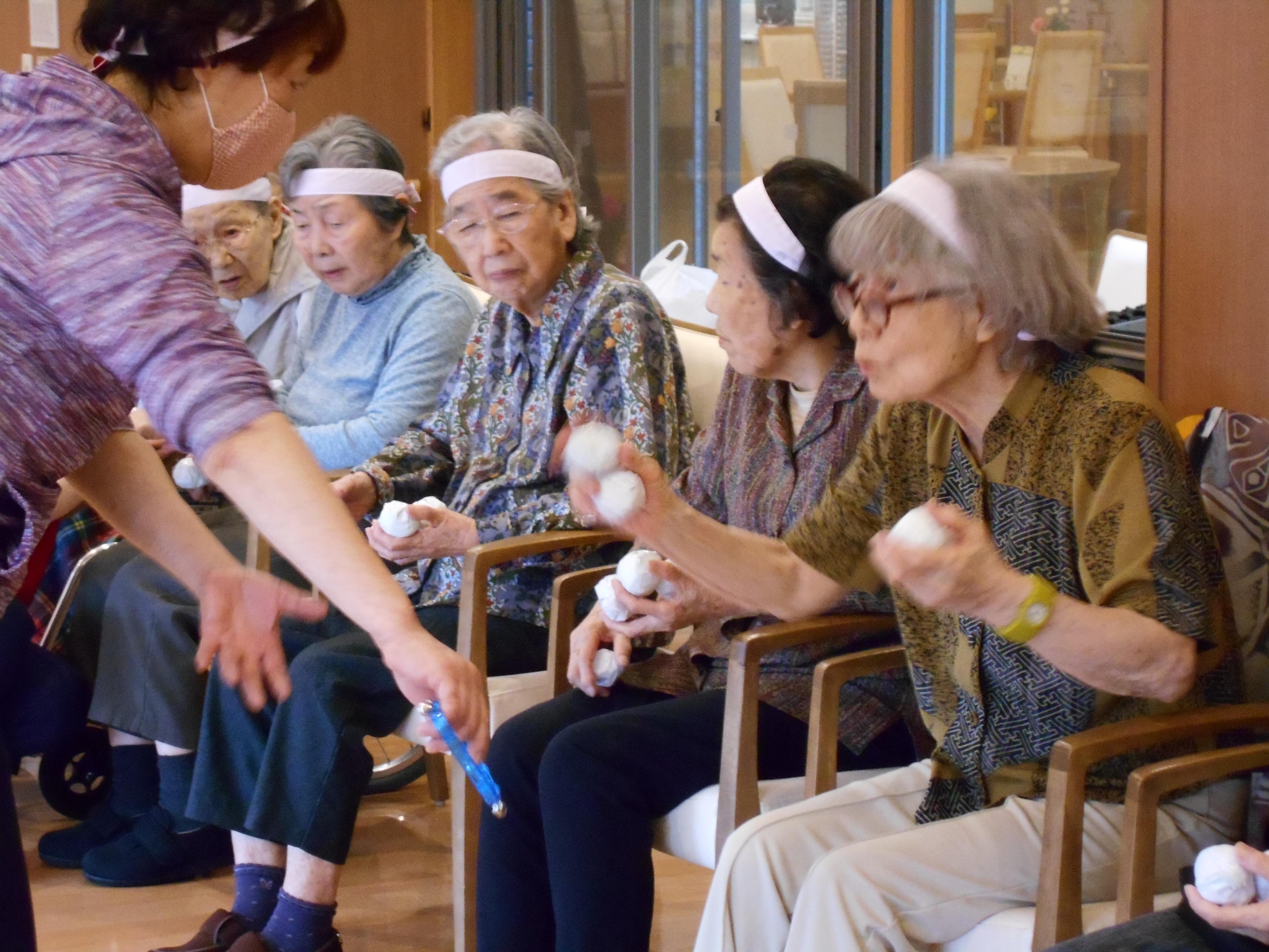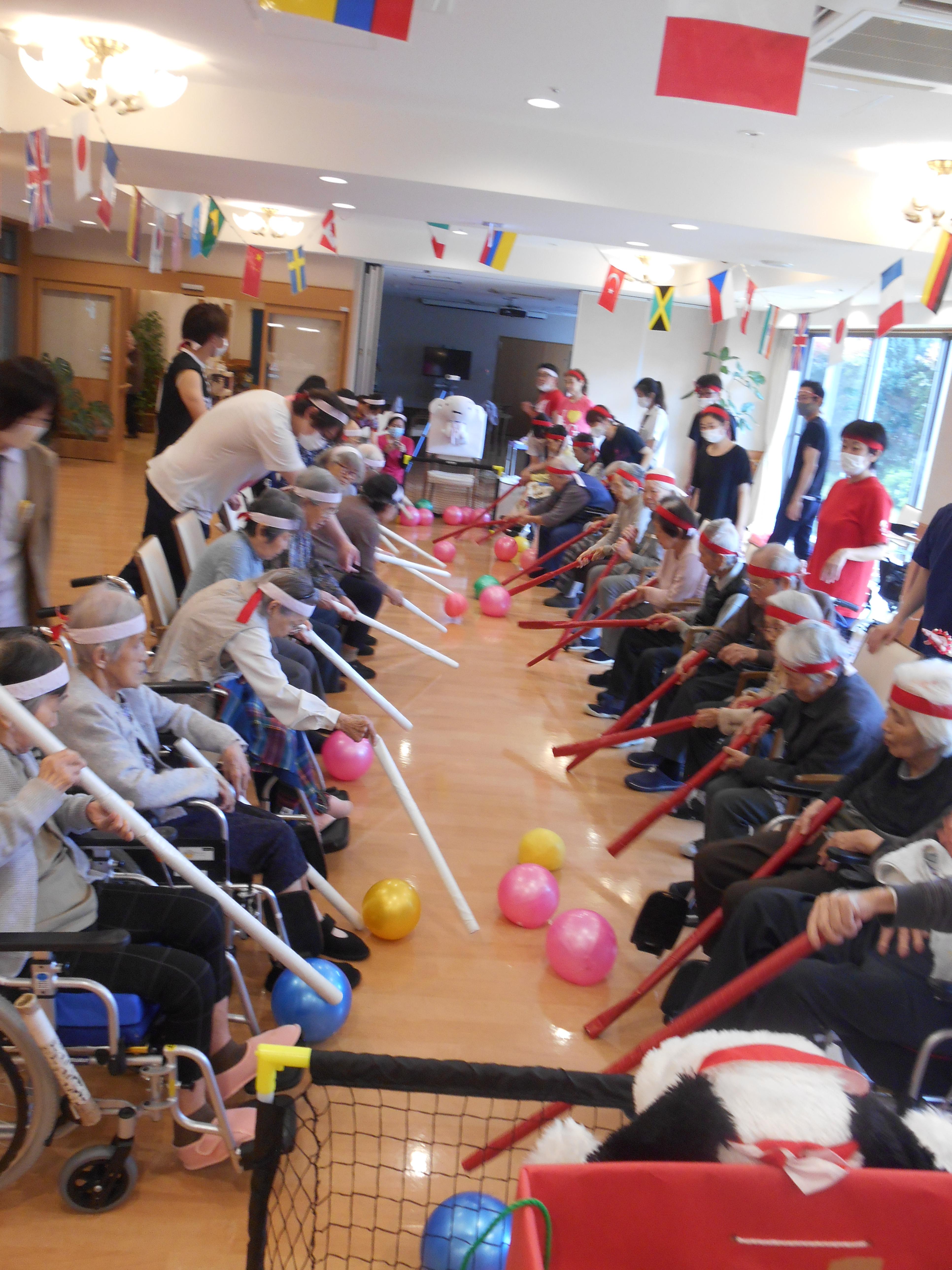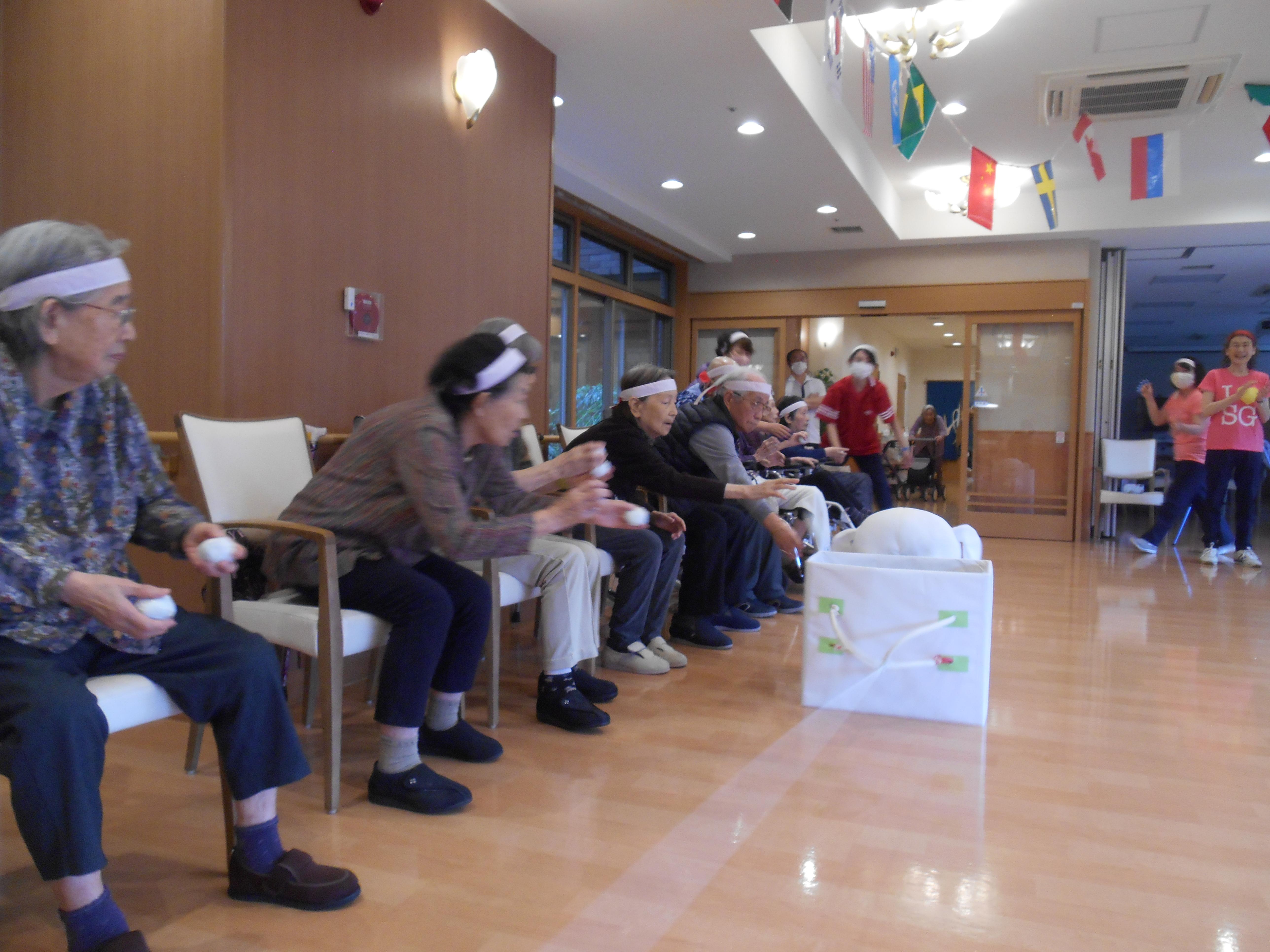 本日は、7階のお客様が紅・白に分かれて、競技を楽しみました。