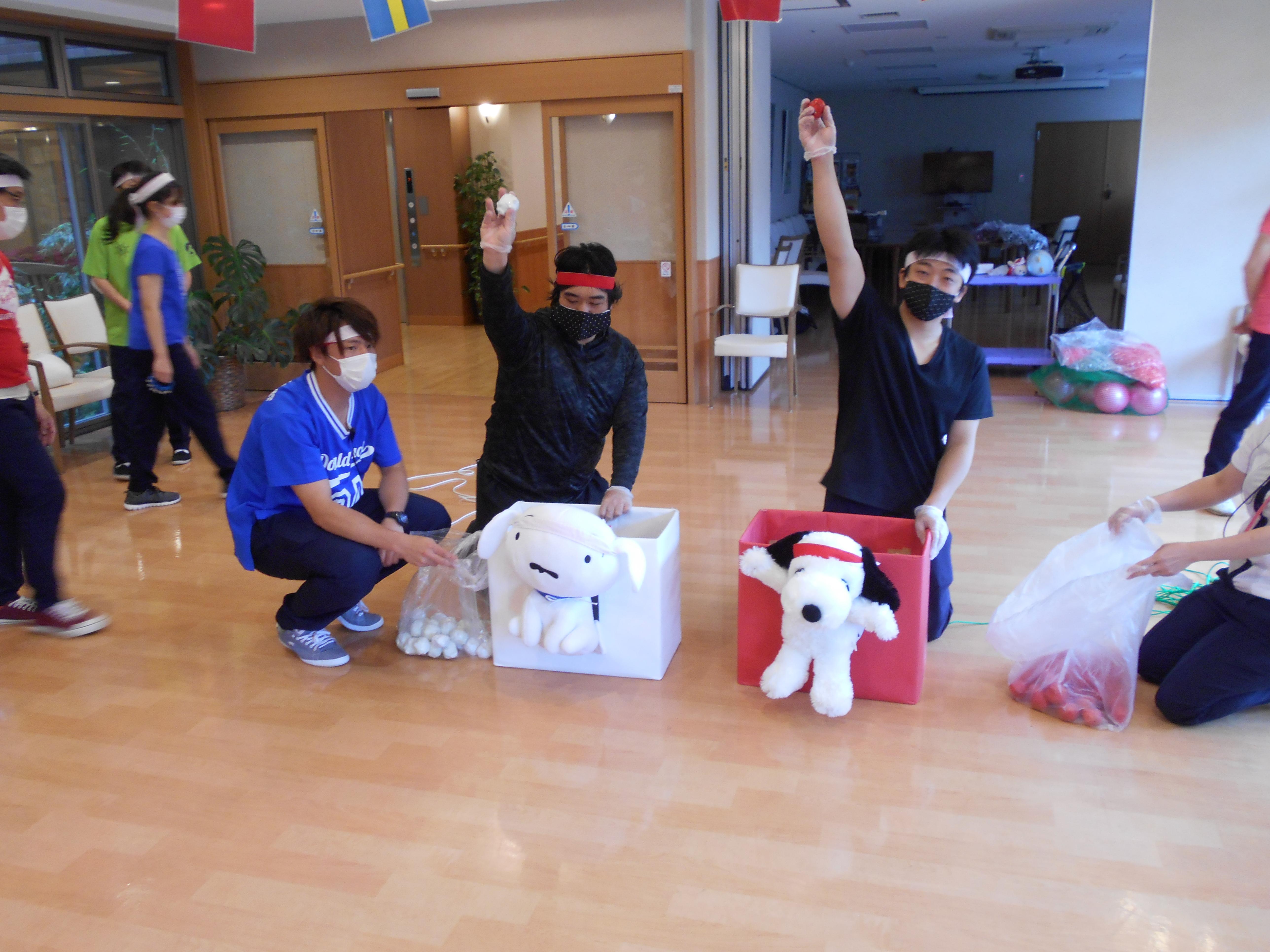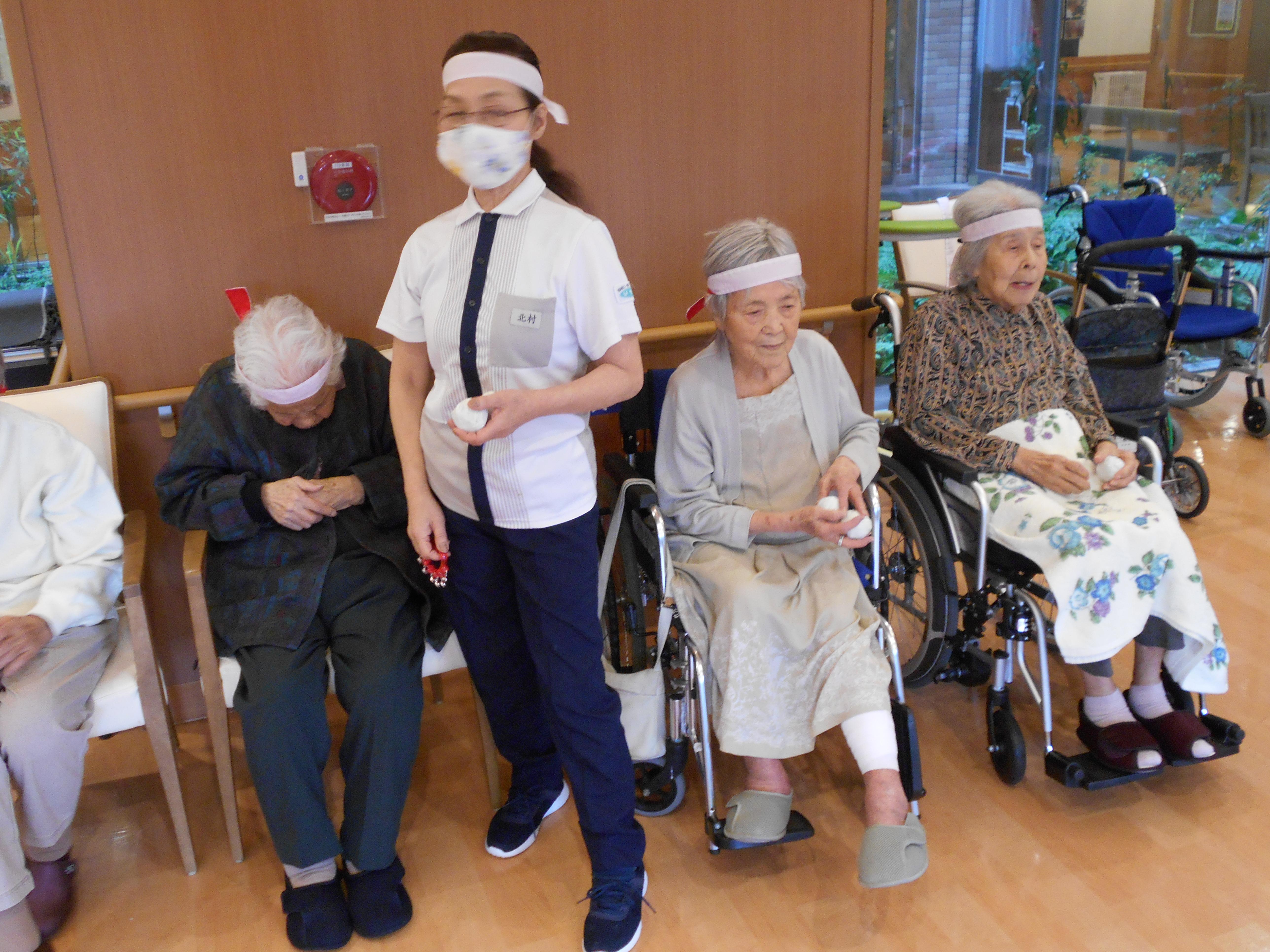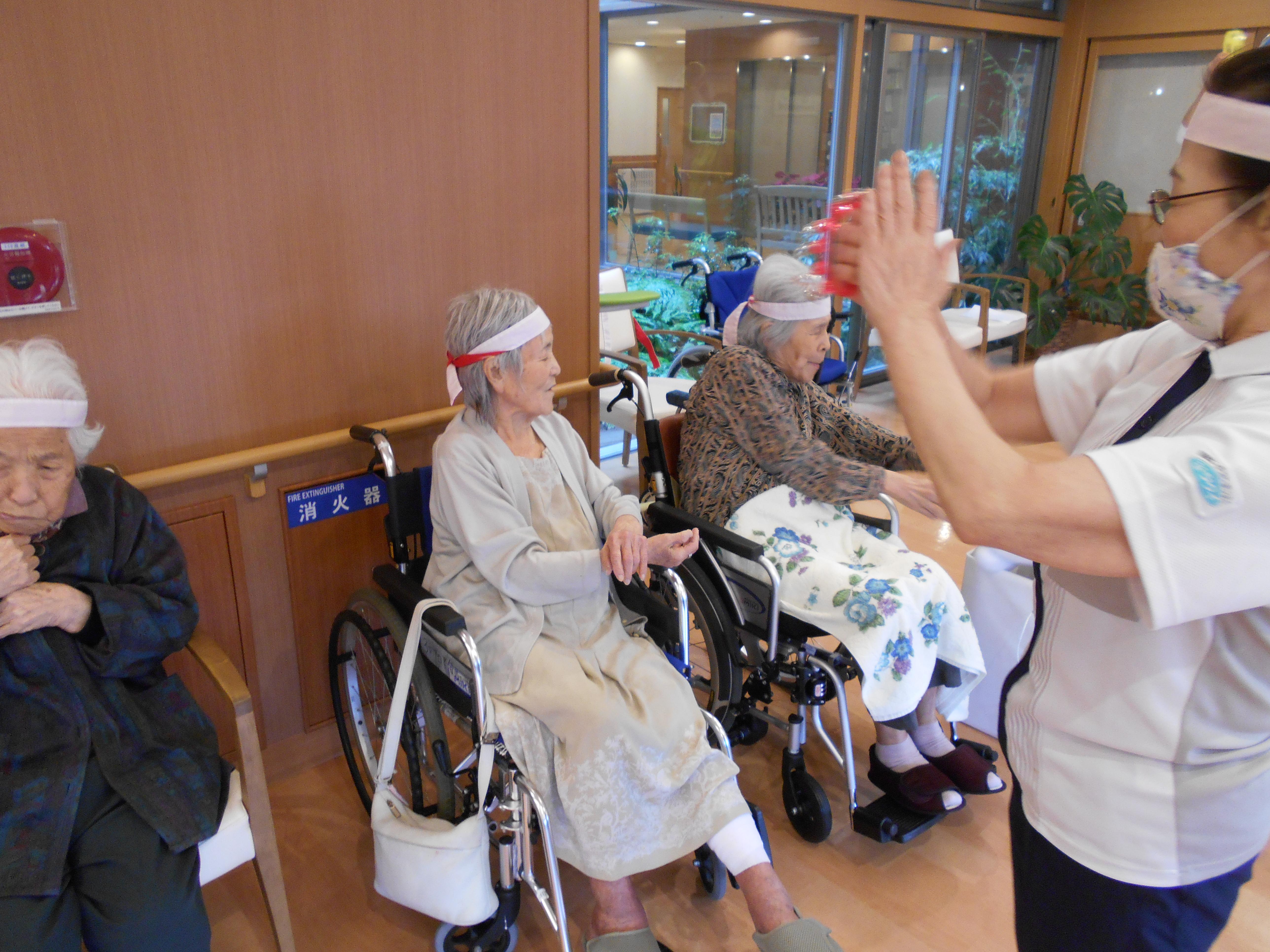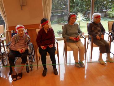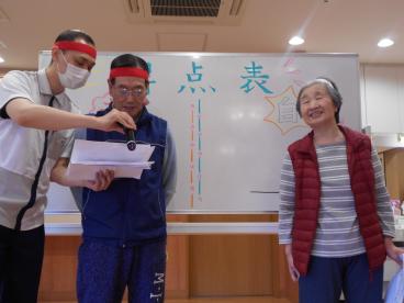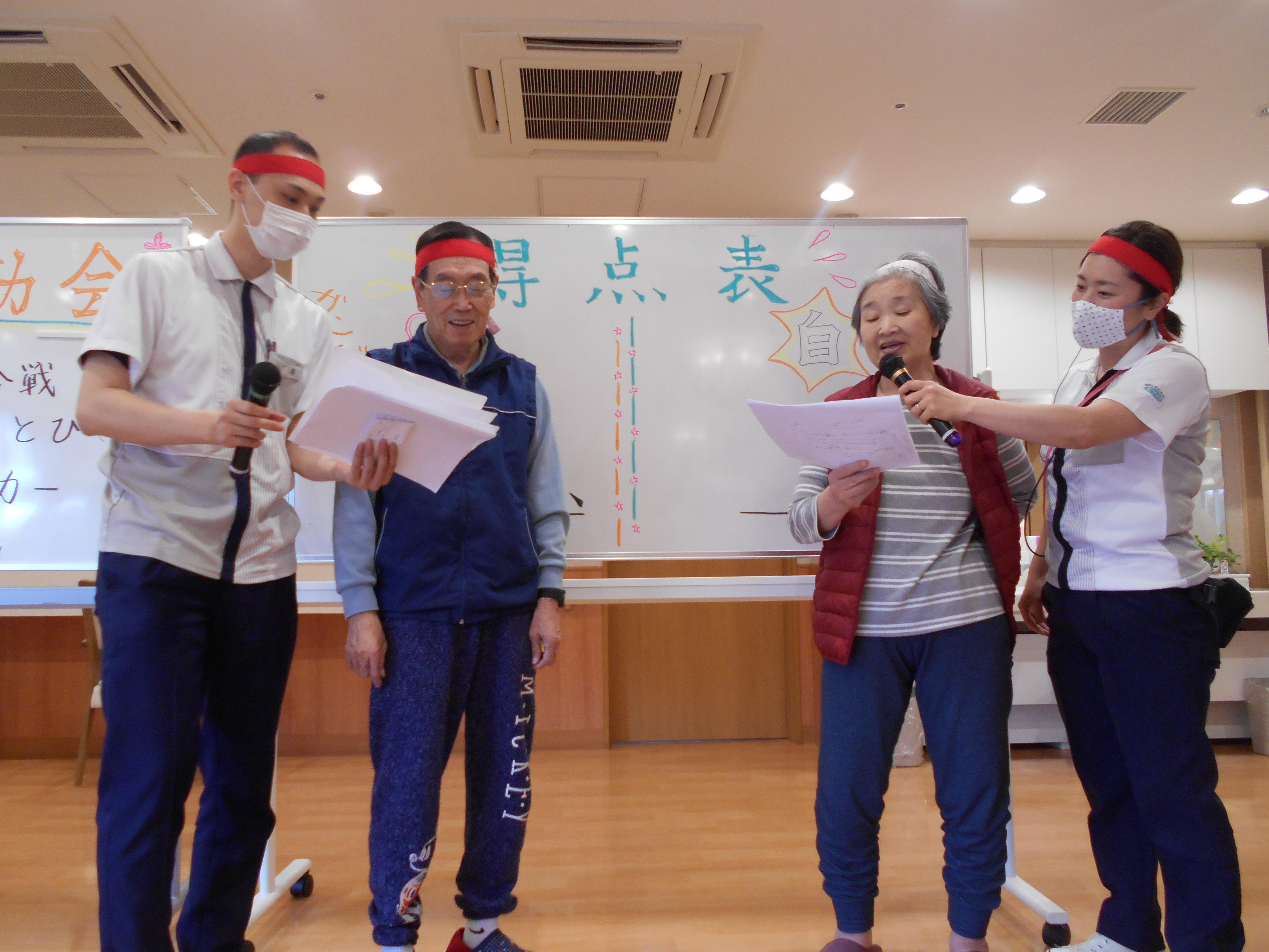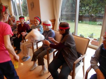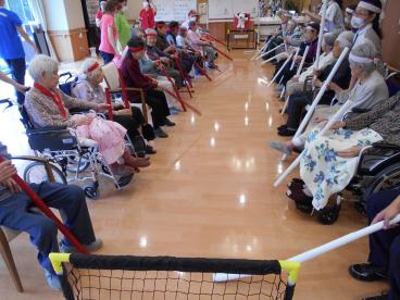 本日は2日目、3階のお客様が紅・白に分かれて、競技を楽しみました。