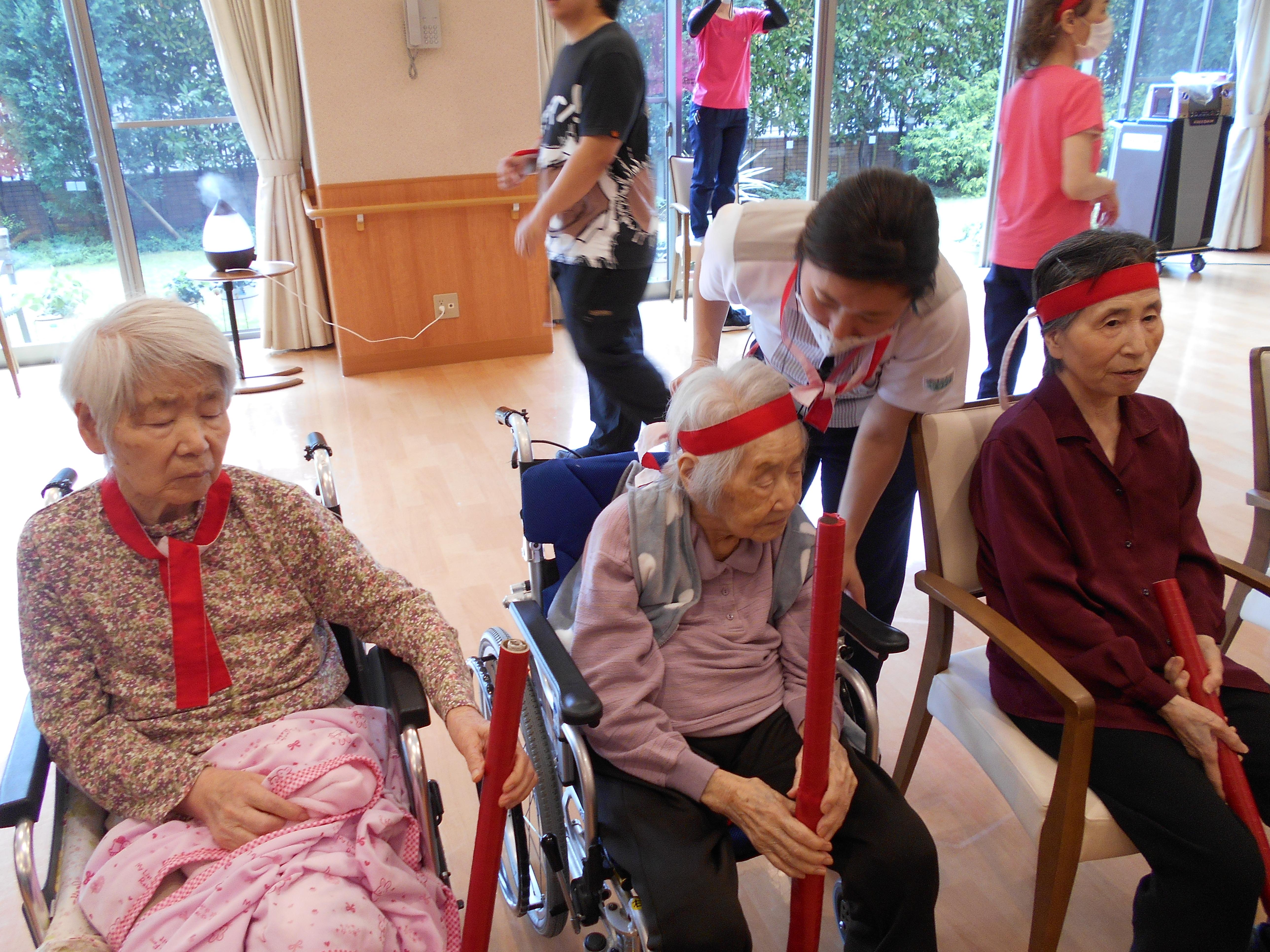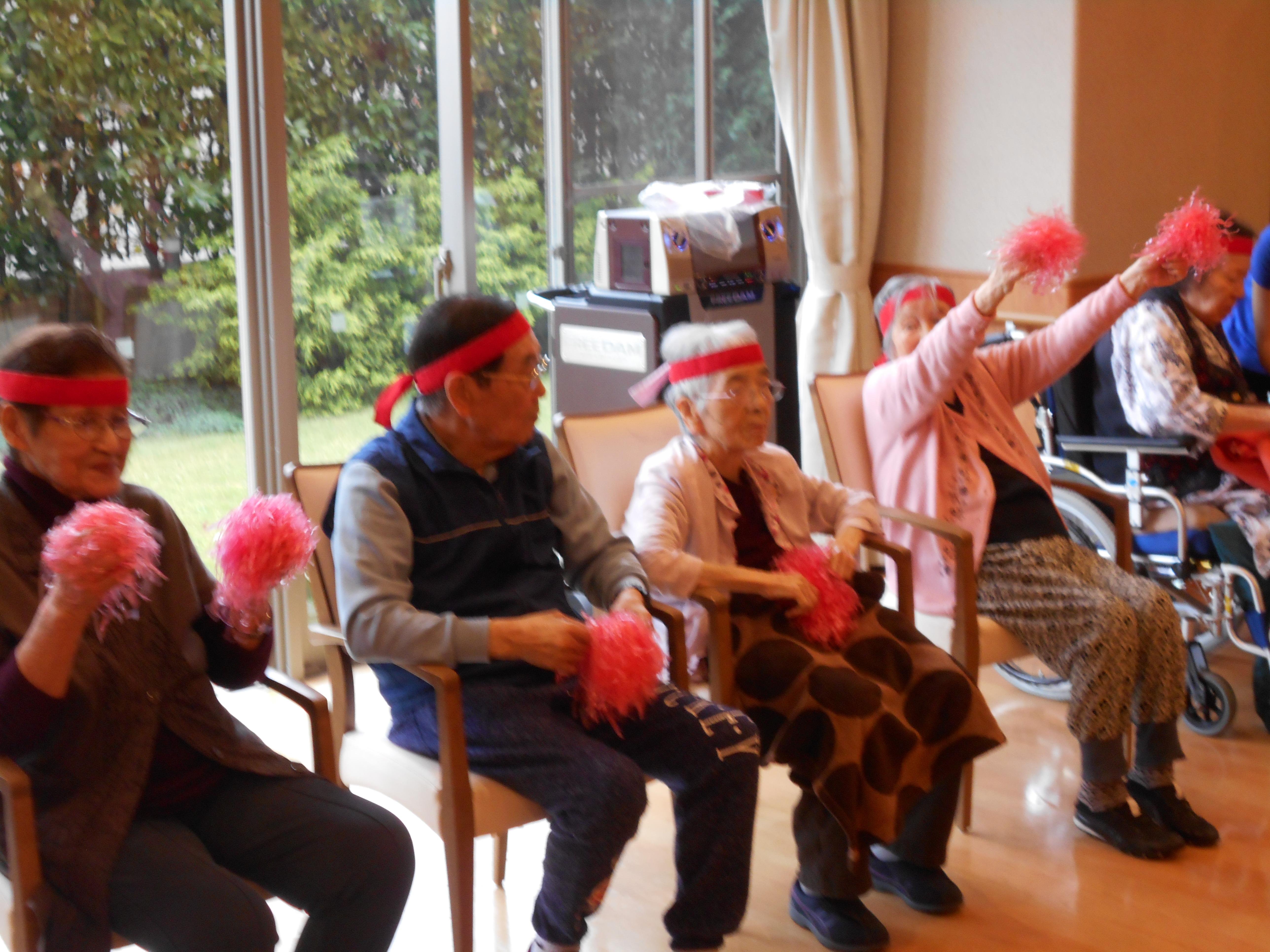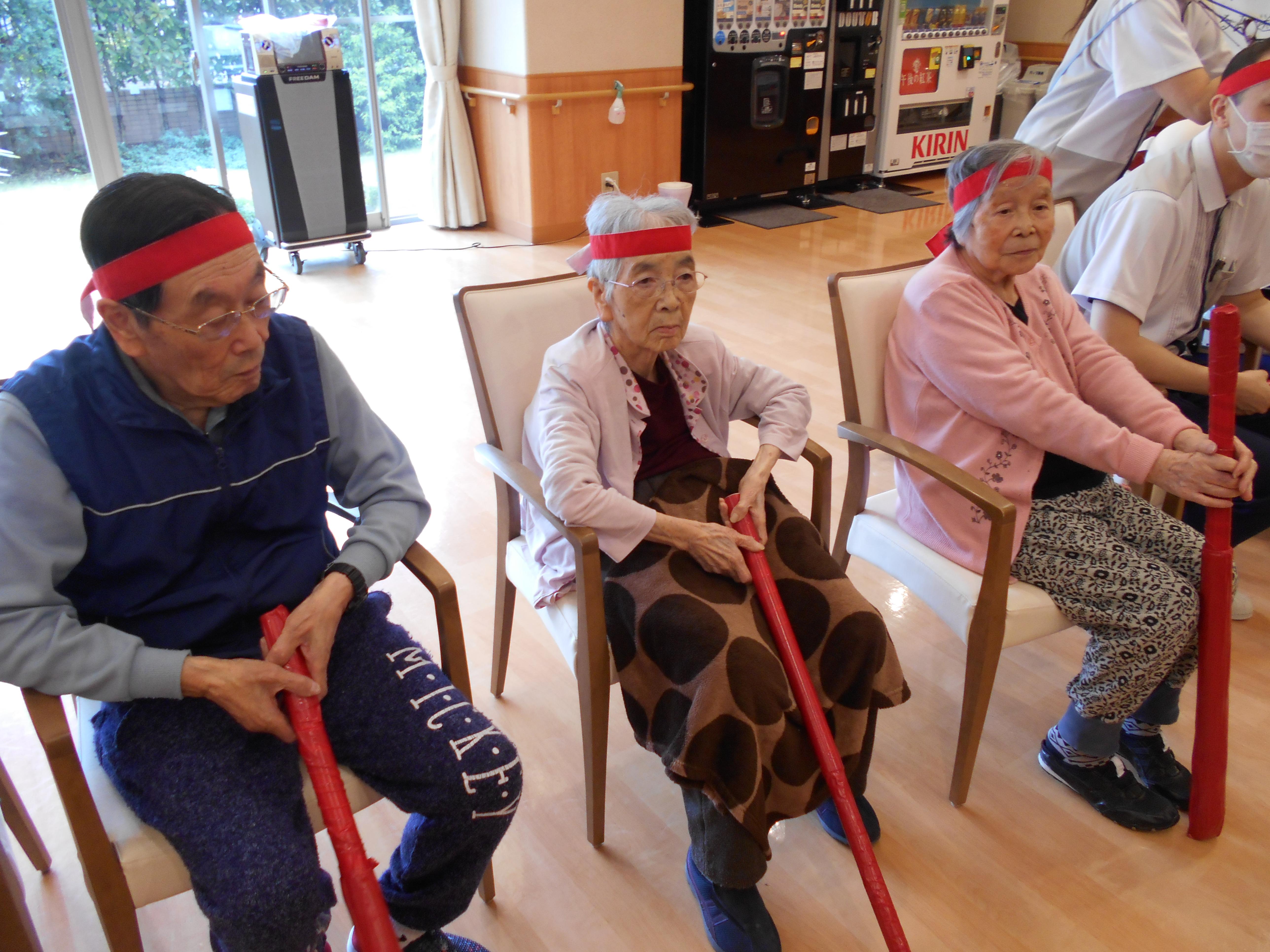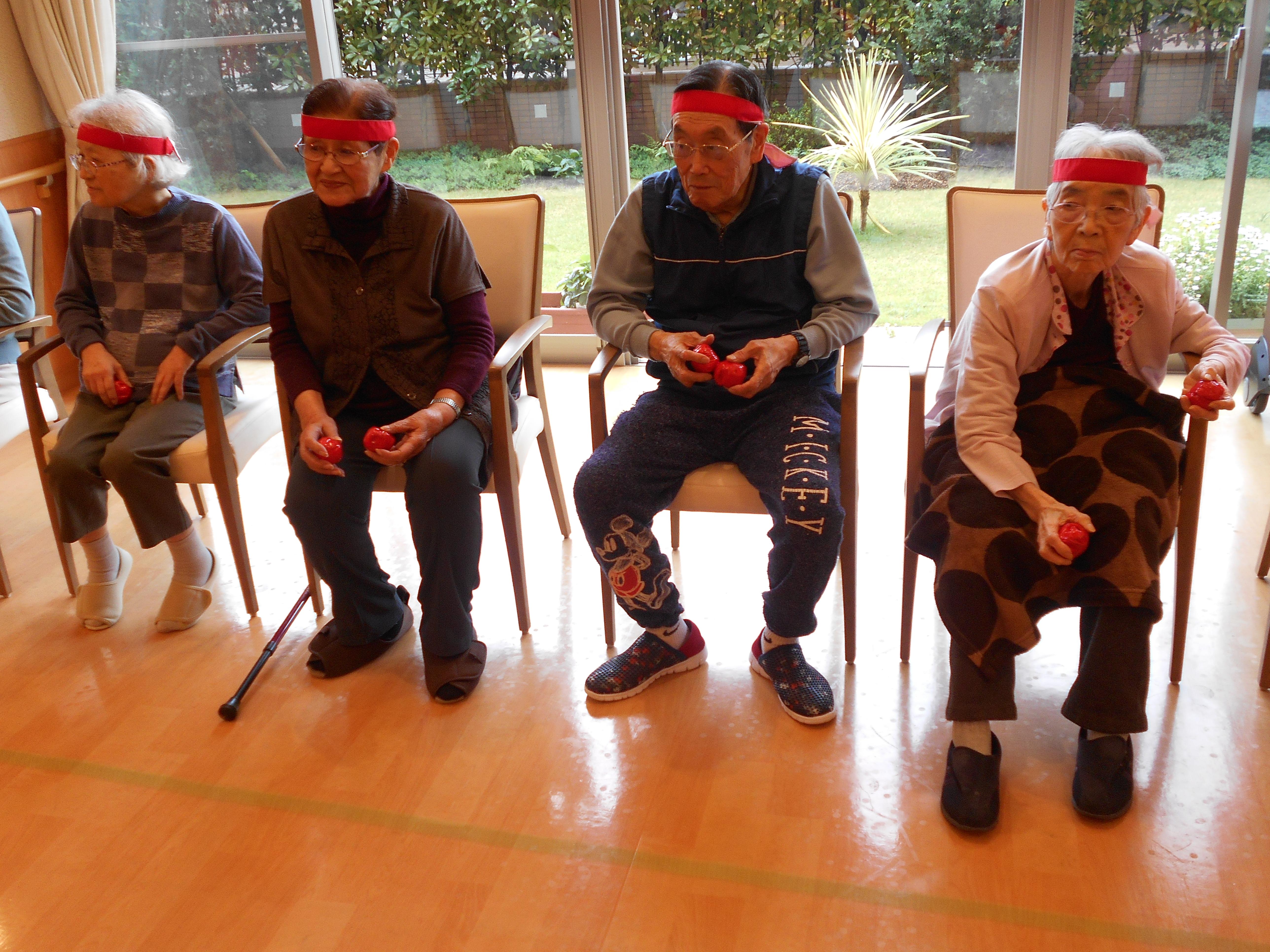 本日は2日目、3階のお客様が紅・白に分かれて、競技を楽しみました。