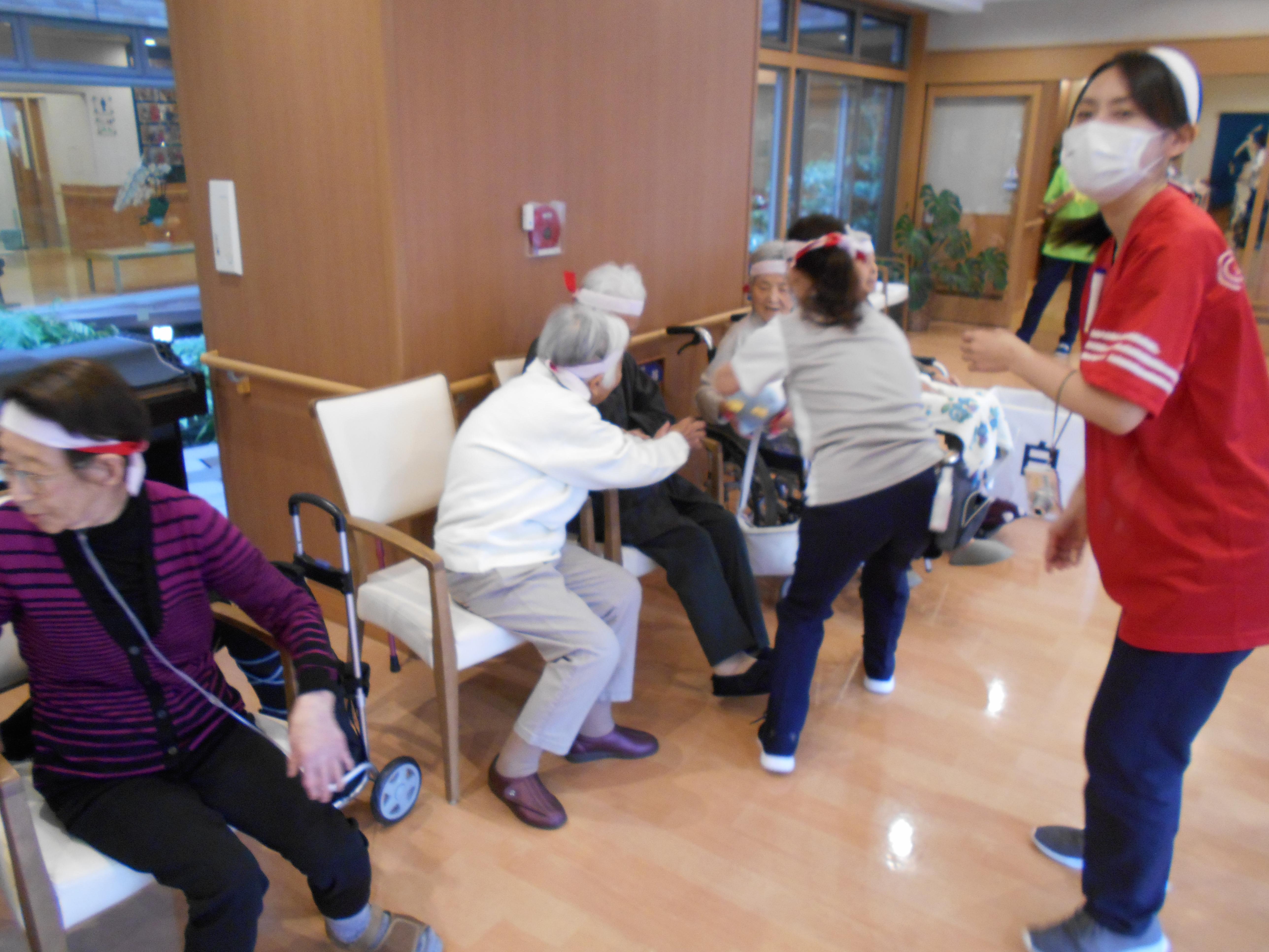 各フロアごとに開催の、ツクイ・サンシャイン町田東館の大運動会。