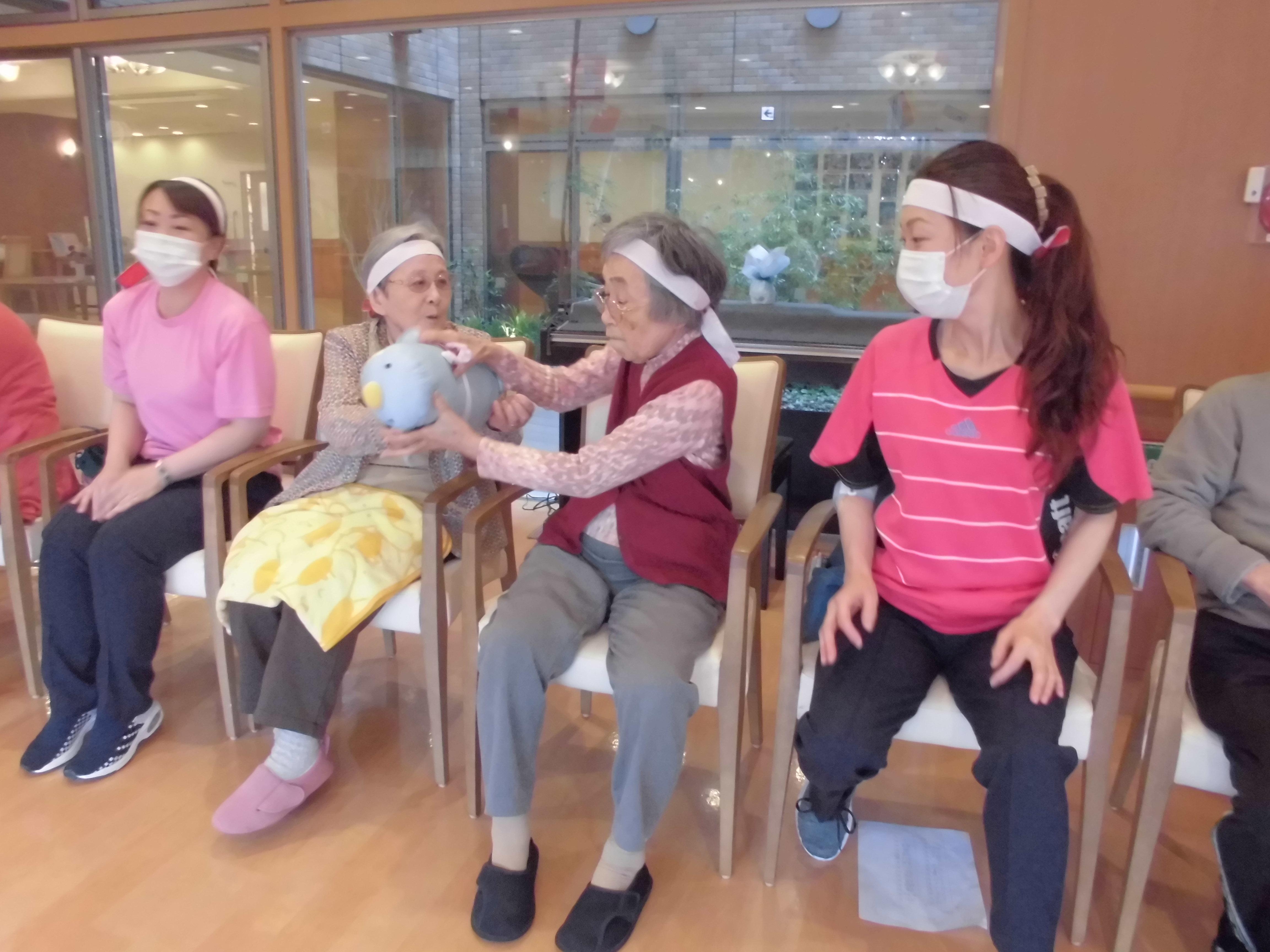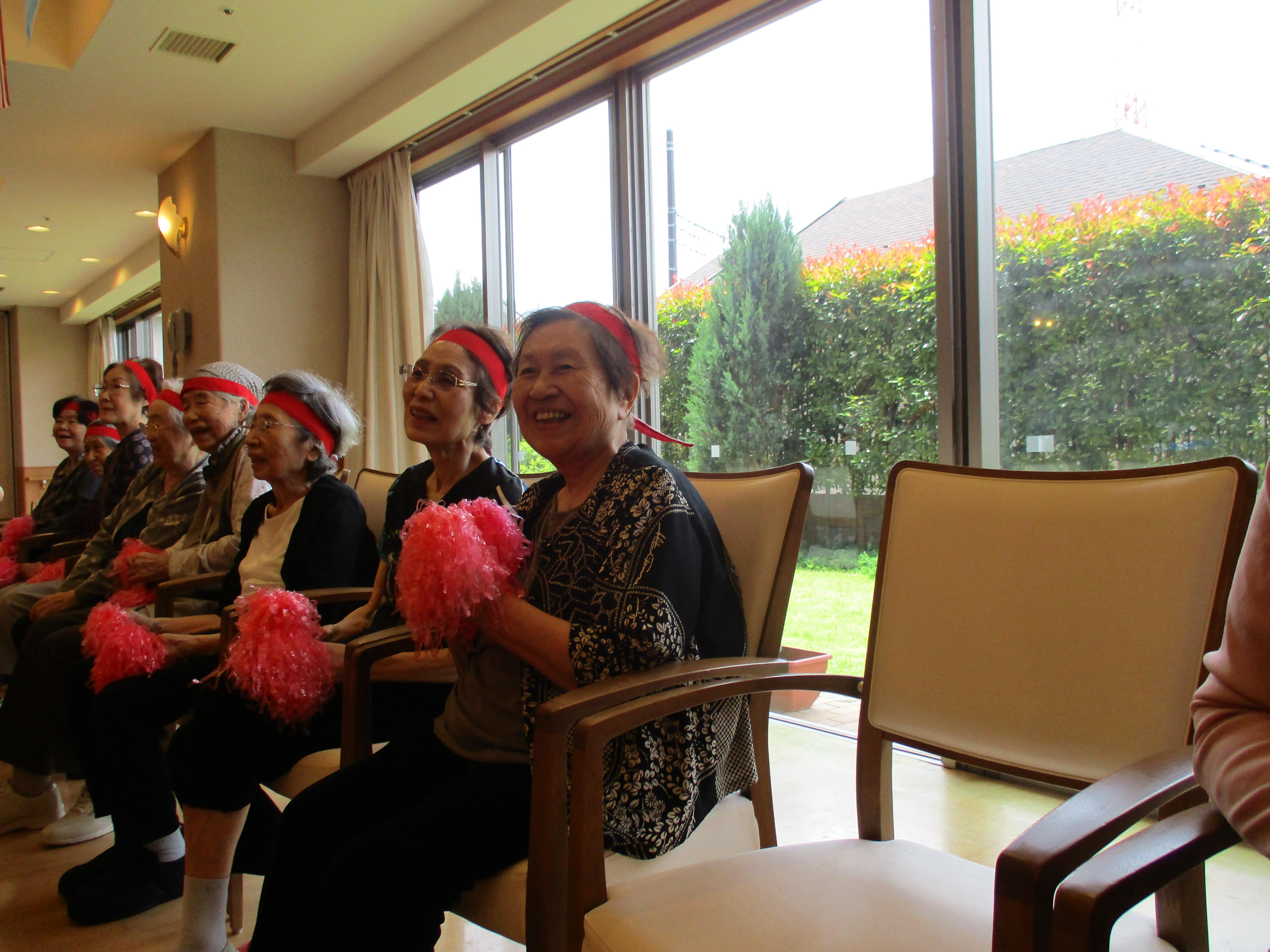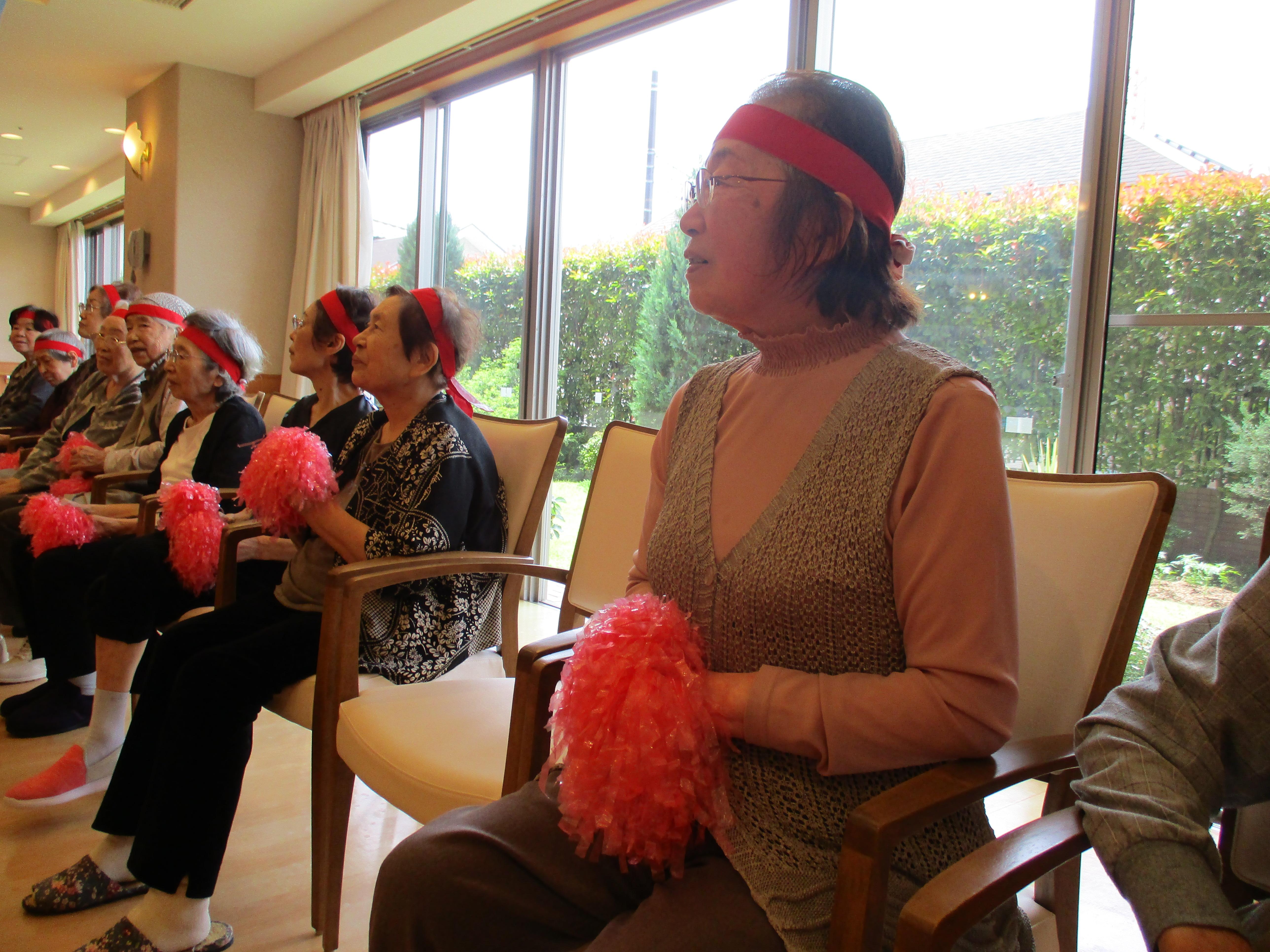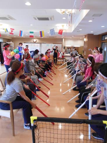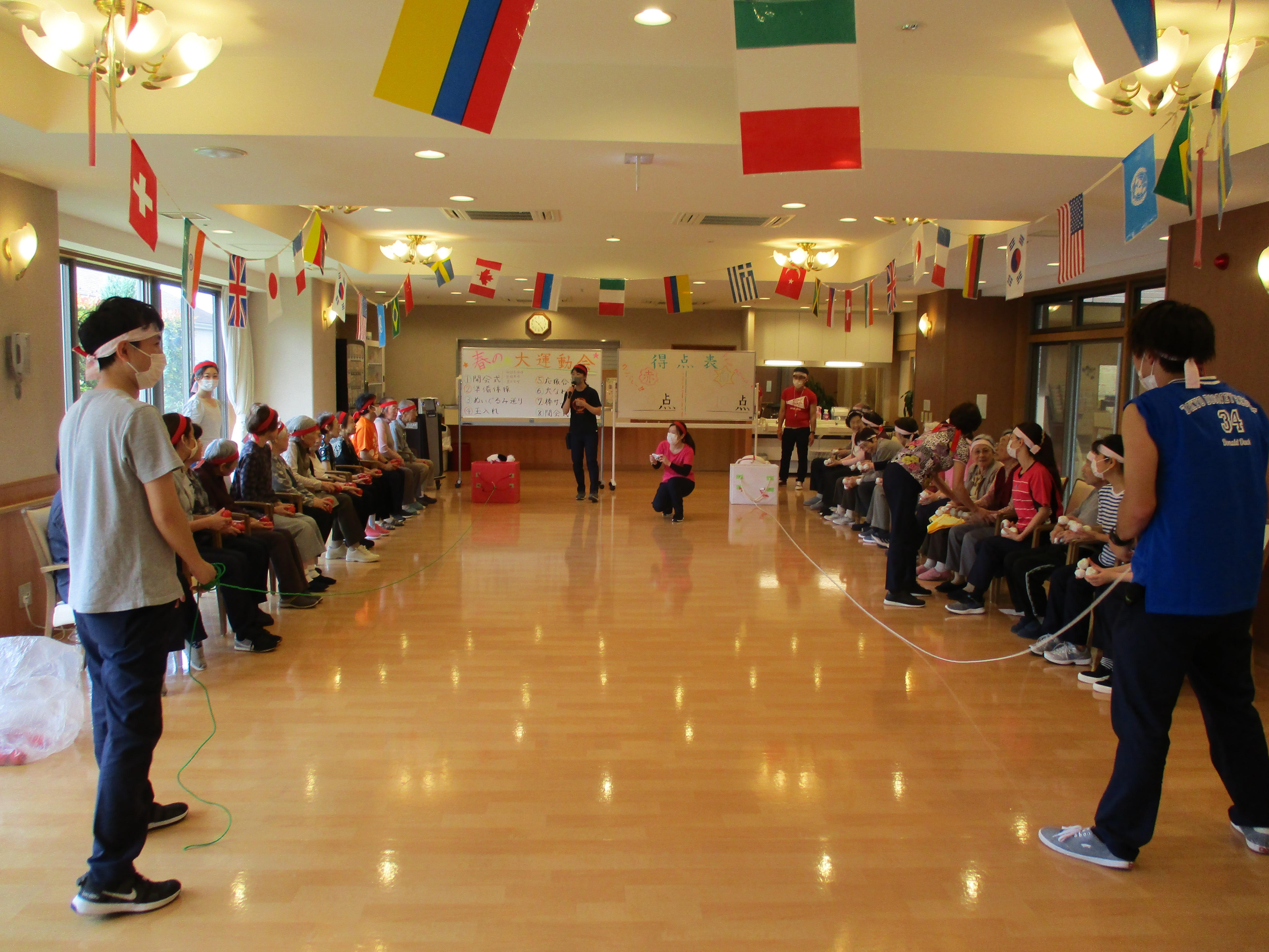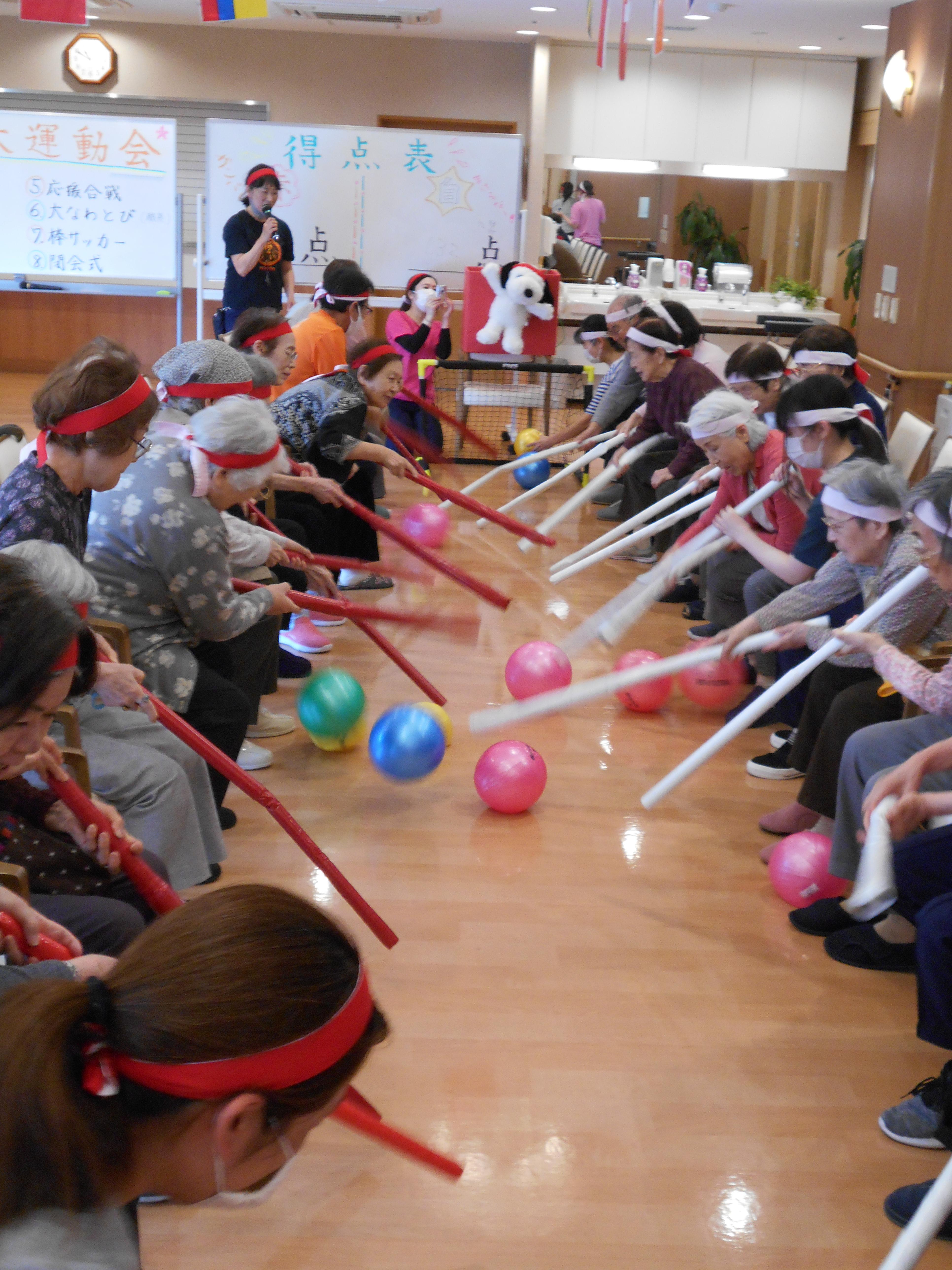 本日は4日目、5階のお客様が紅・白に分かれて、競技を楽しみました。