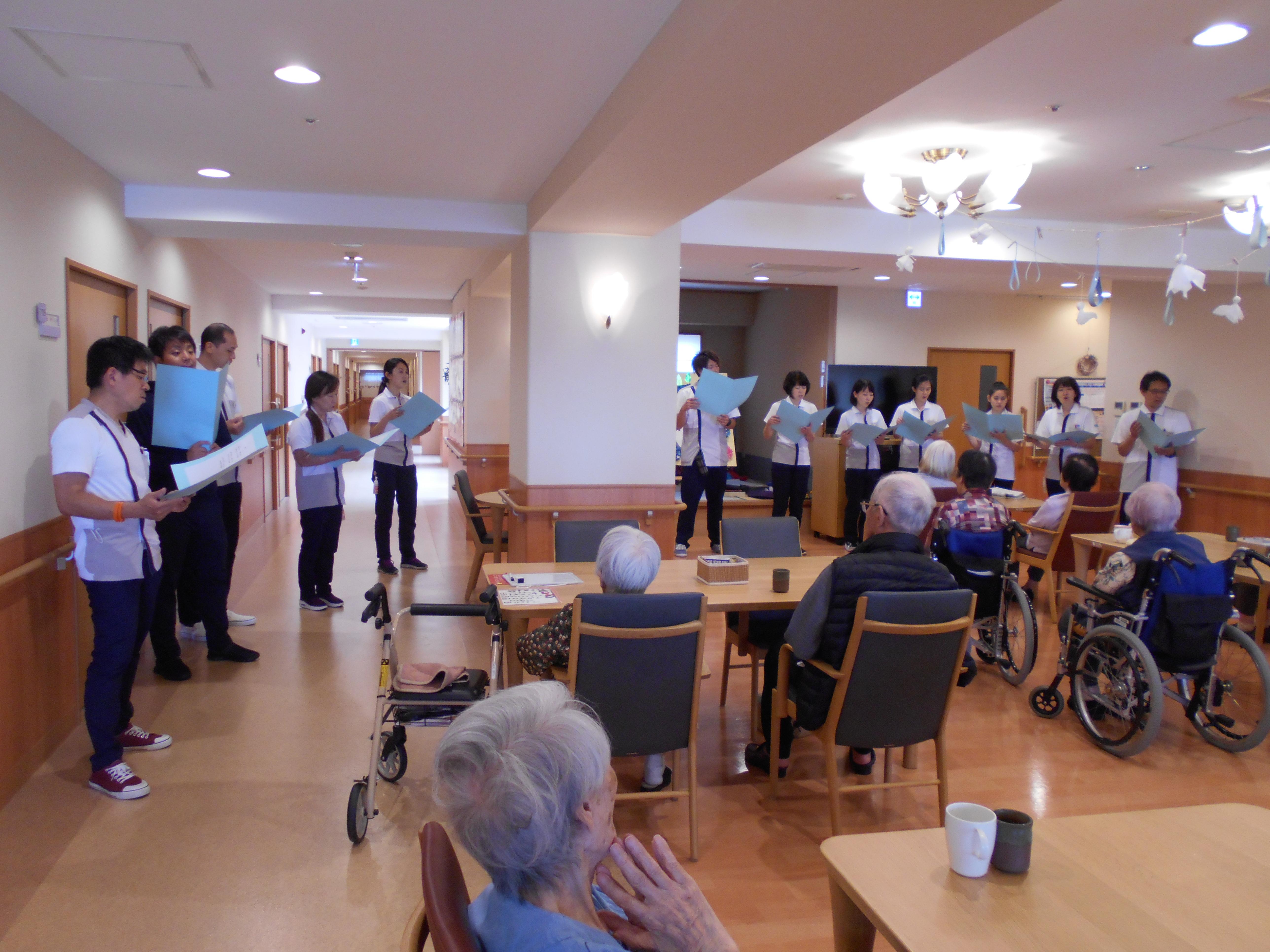 今日は、父の日です。お祝いとして、スタッフが各フロアを回って、歌のプレゼントをさせていただきました。