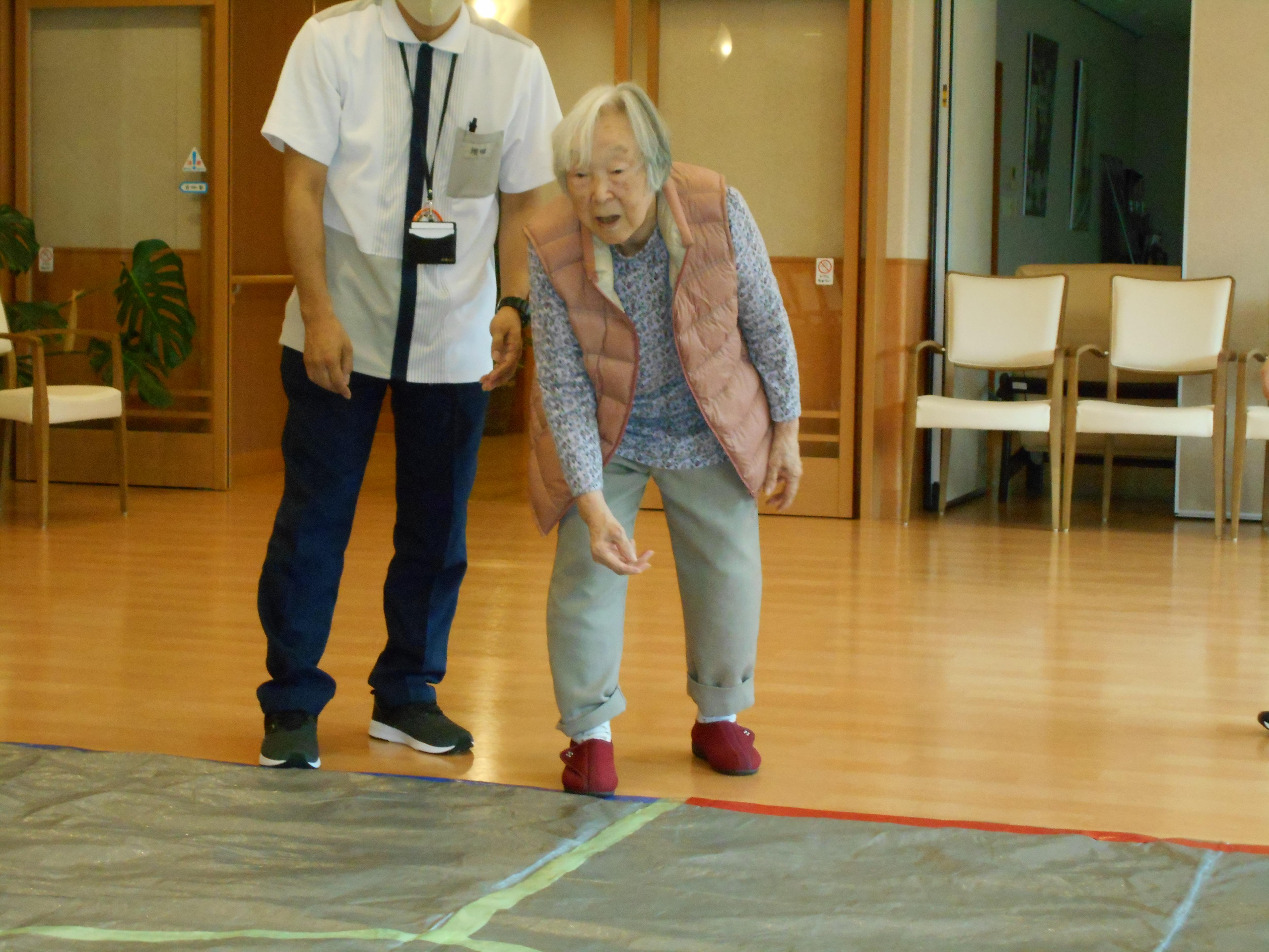 本日、10時からボッチャでした。4階のお客様に楽しんでいただきました。ナイスショット連発の、好ゲームでした。
