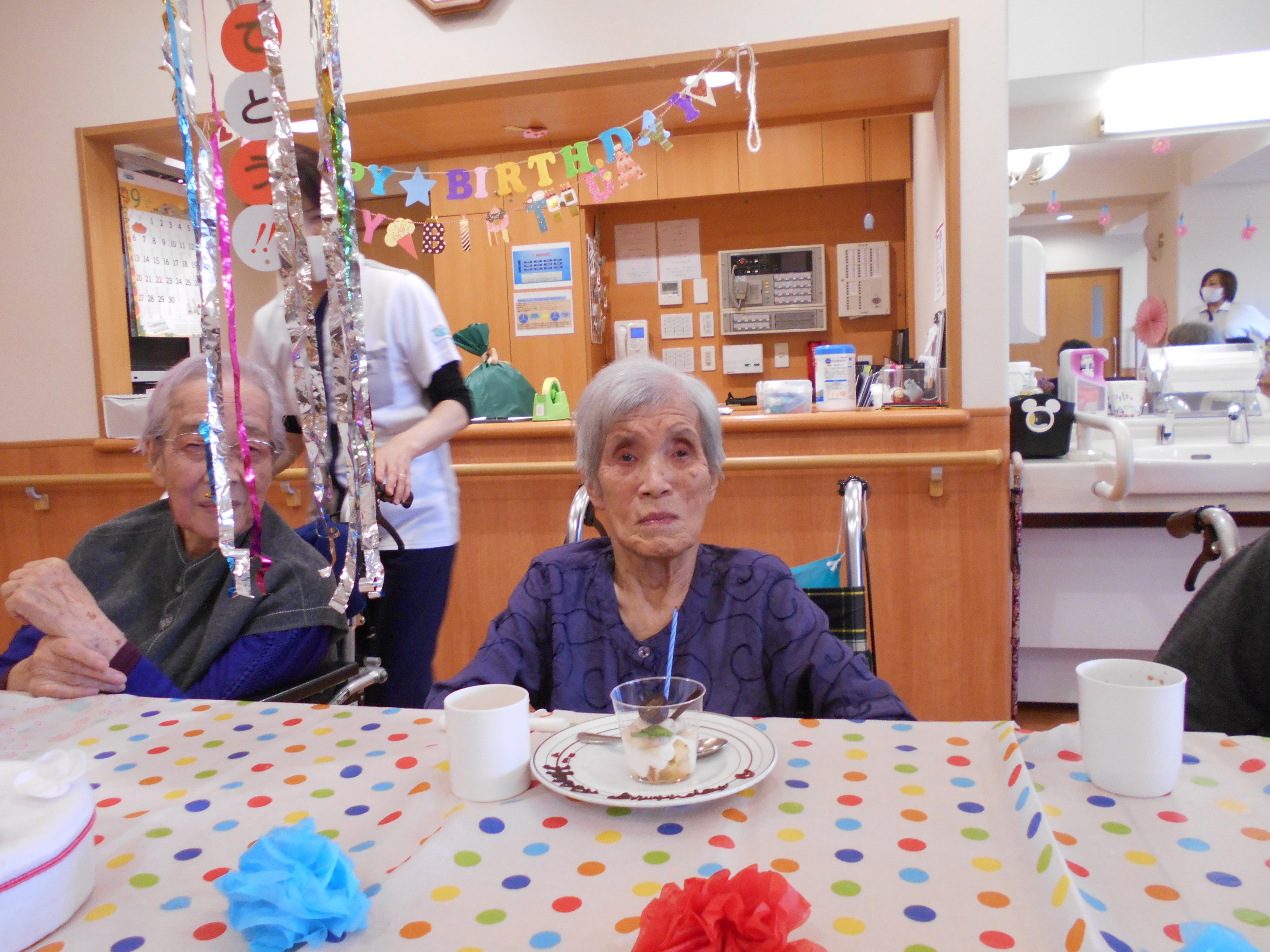 毎月の最終日曜日に、各フロアでお誕生日会を実施しています。厨房スタッフ力作のケーキでお祝いです。