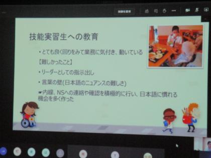 ツクイ・サンシャイン町田東館は、「技能実習生の取り組み」と題して、ベトナムからの介護技能実習生に対する取り組みに関して、発表しました。