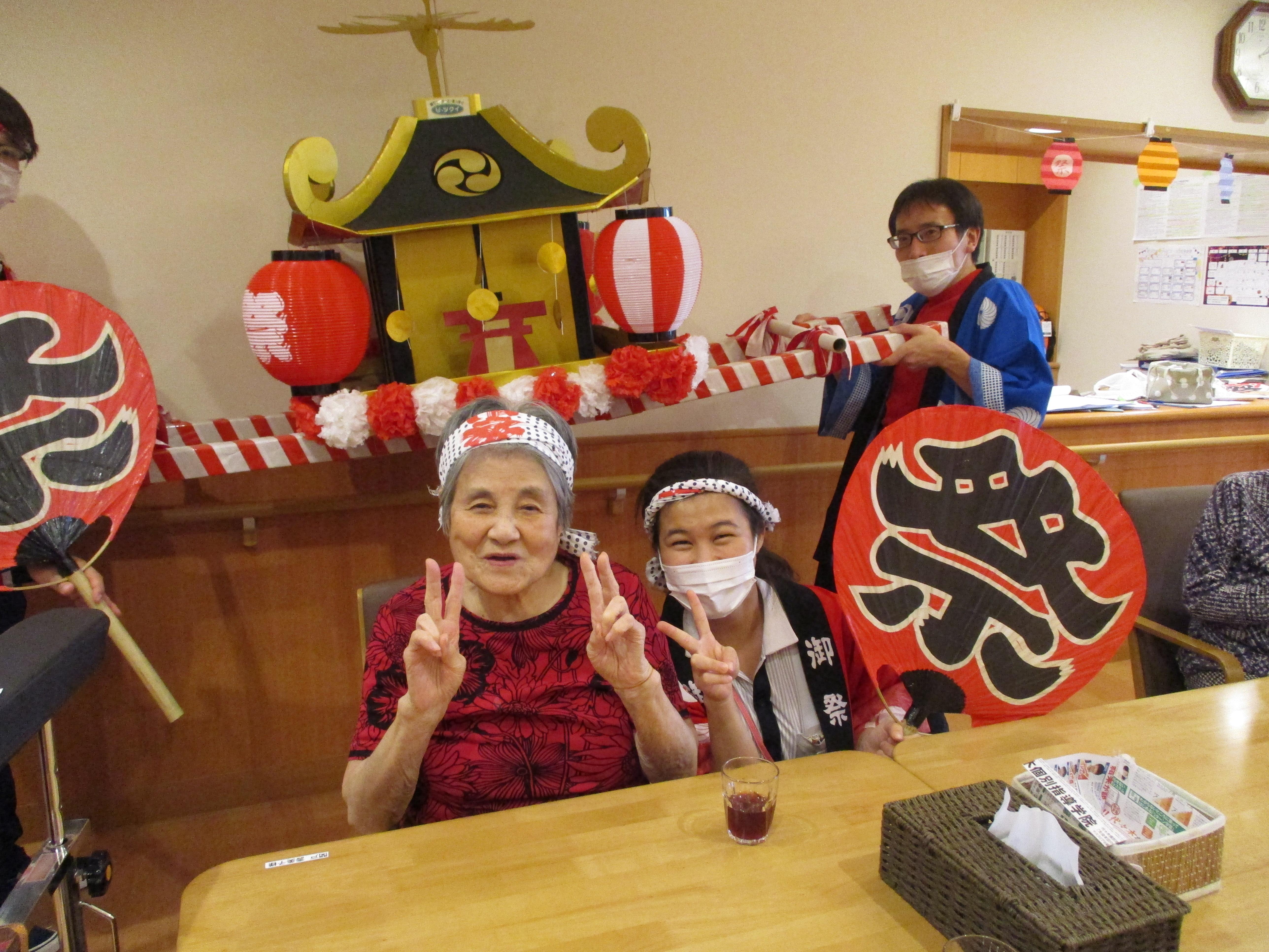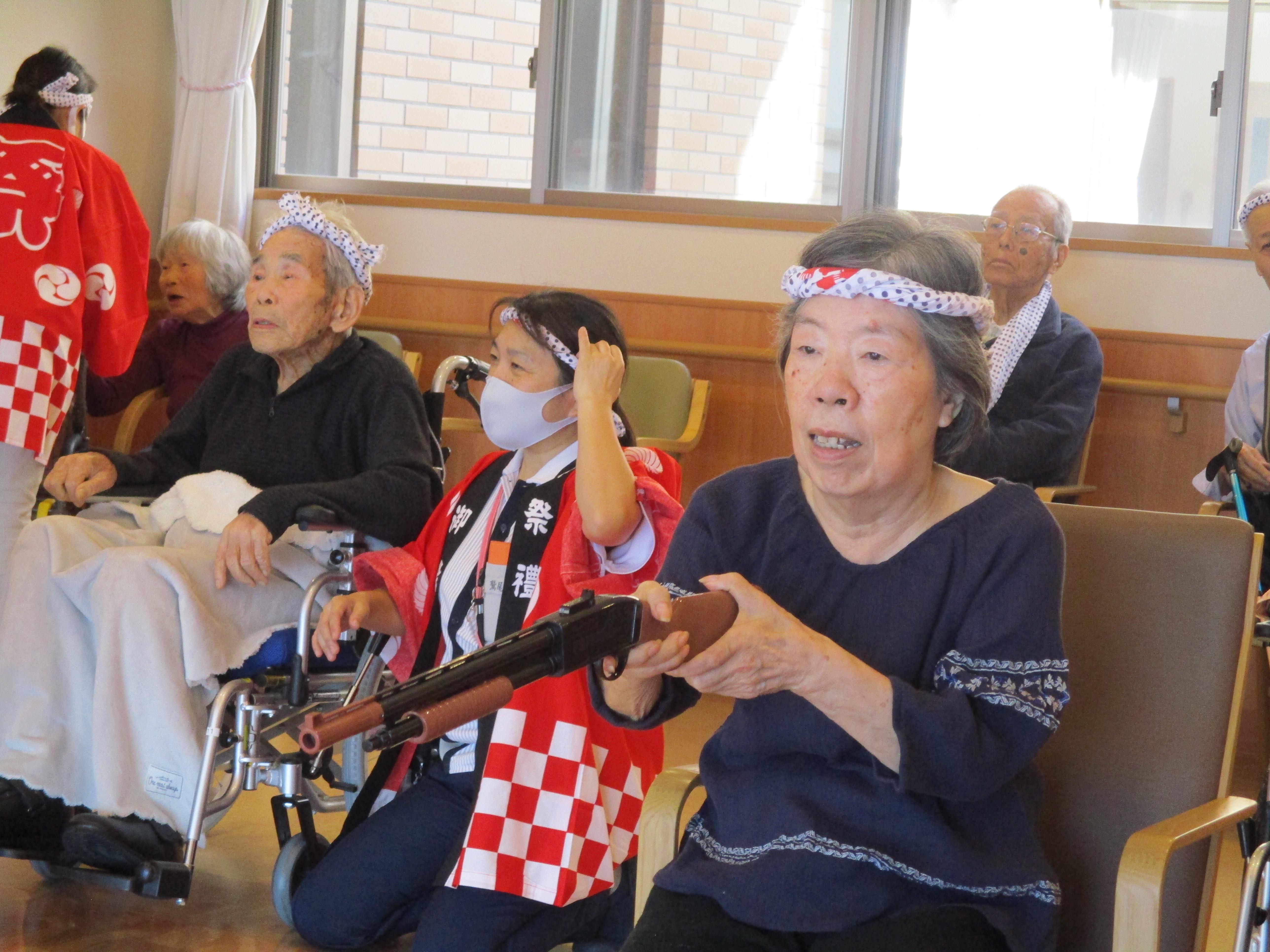 6Fフロアは射的をしました。縁日にもやっているのでコツを掴んでいる方が多く、皆さん楽しんでおられました。1F食堂にある出店にも並んで、お好きな食べ物を選び、6F食堂で美味しく召し上がりました。