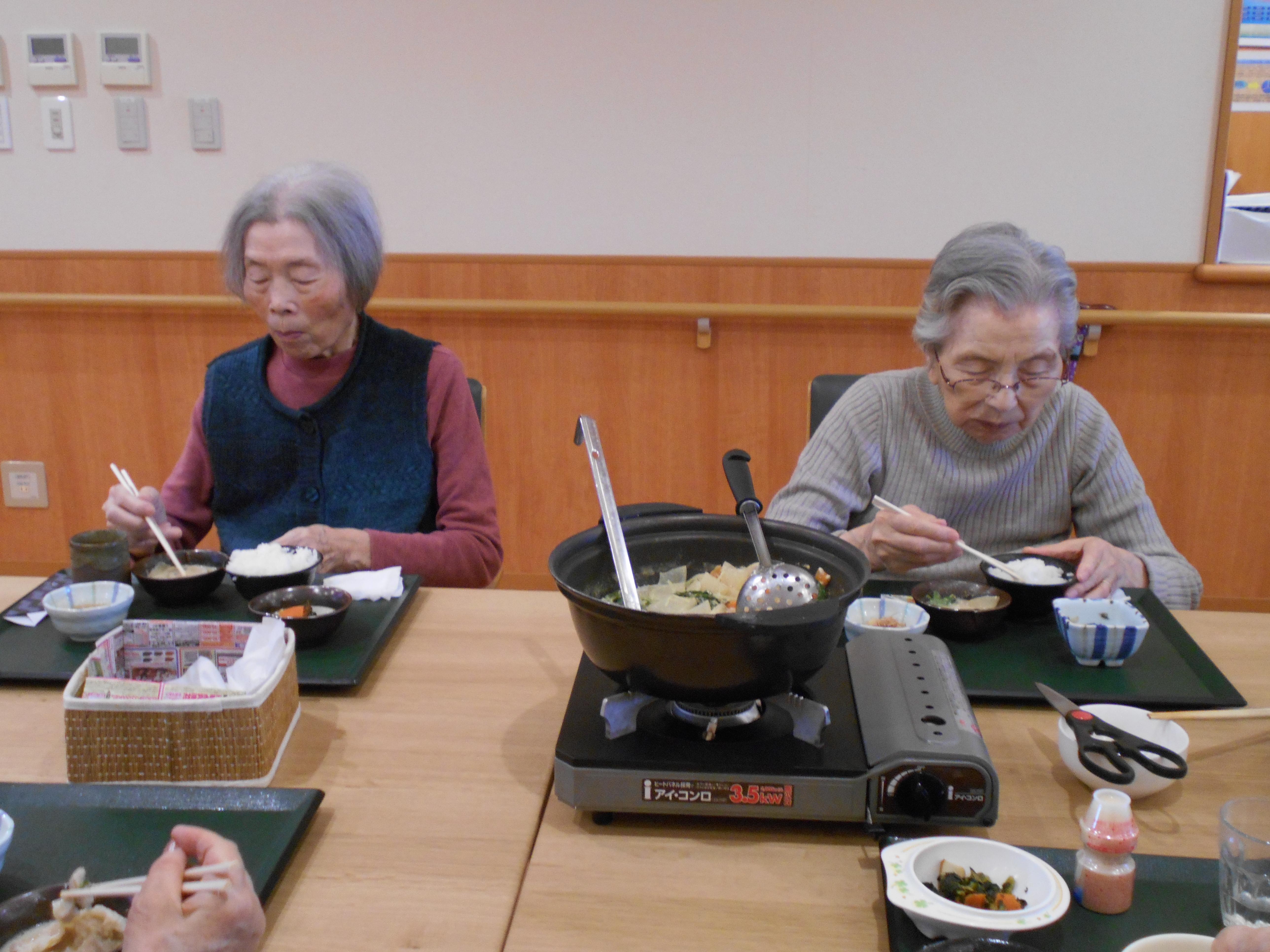 今回の鍋レクリエーションは、フロアごとにお客様のリクエストを伺って決めるお楽しみ企画です。7Fは『豆乳鍋』にしました。久しぶりのお鍋で、皆さん大満足でした!!