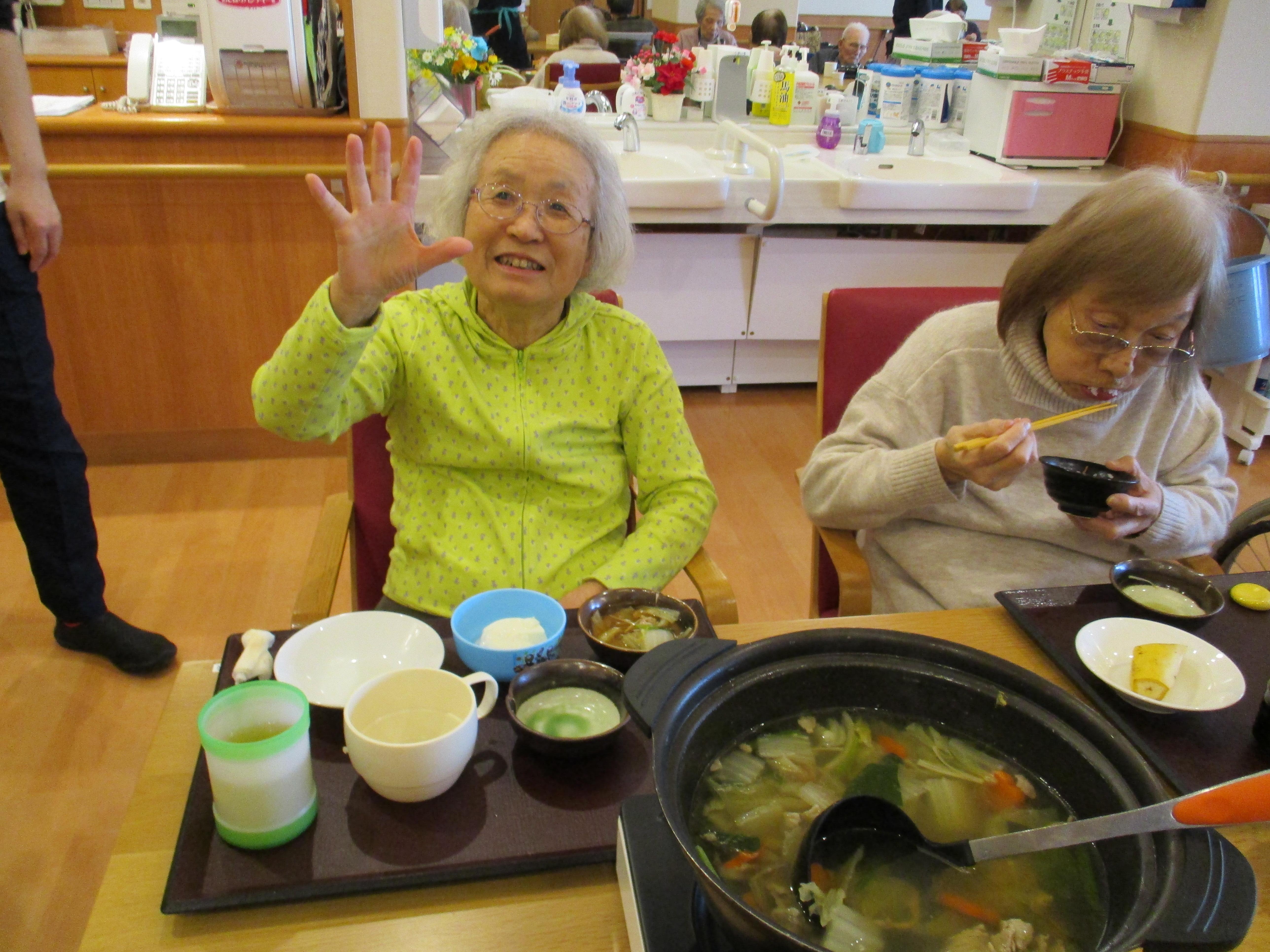 今回の鍋レクリエーションは、フロアごとにお客様のリクエストを伺って決めるお楽しみ企画です。3fは『豚肉のしゃぶしゃぶ』にしました。久しぶりのお鍋で、皆さん大満足でした!!