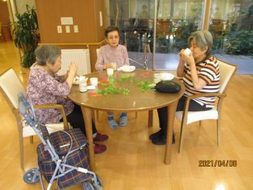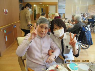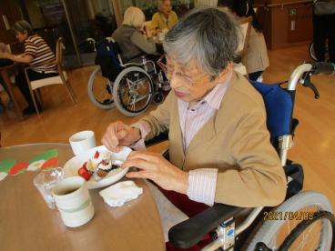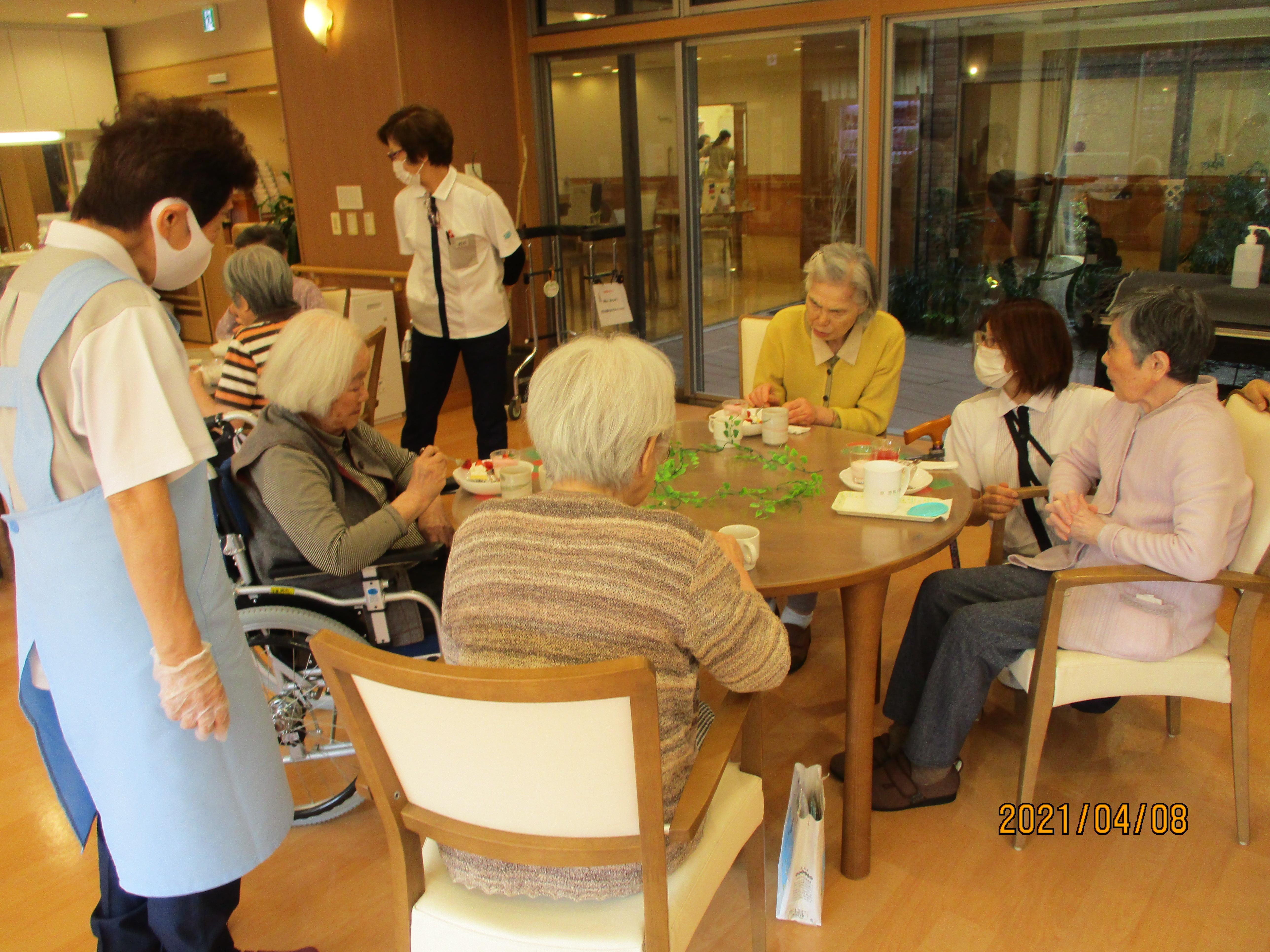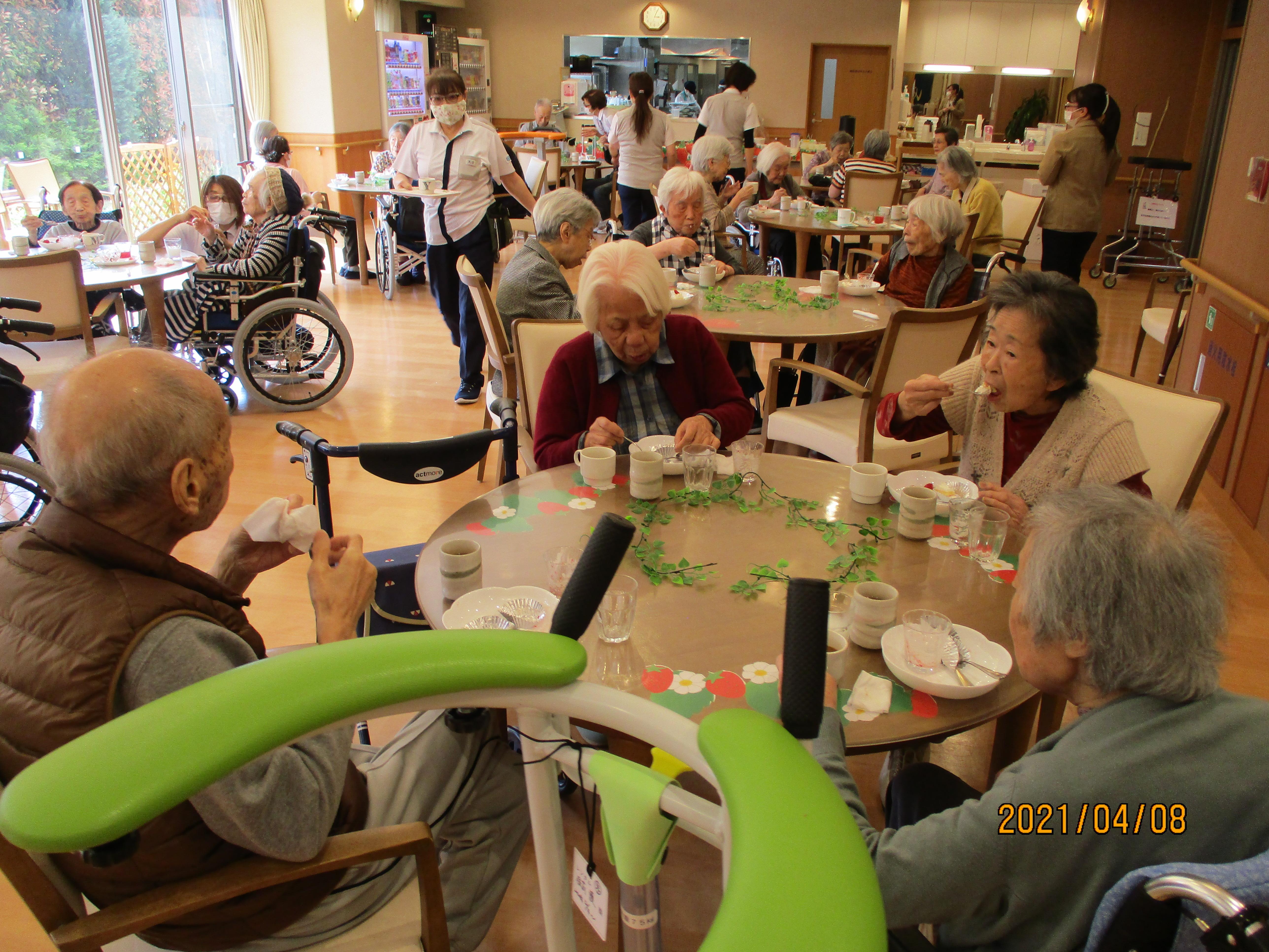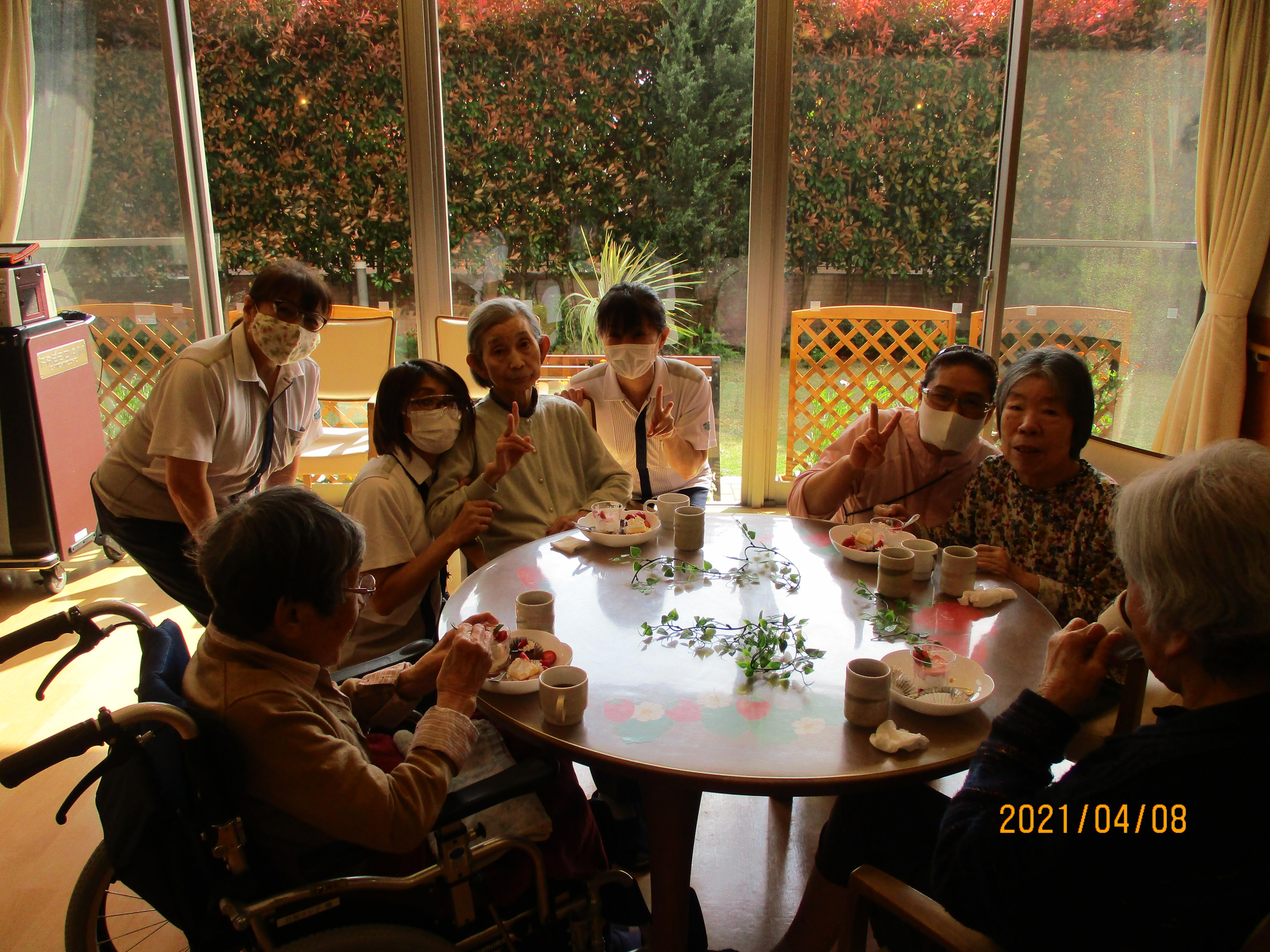 厨房スタッフ力作のイチゴデザートを飾りつけて、各々好きなドリンクを選んでいただき、提供させて頂きました。
