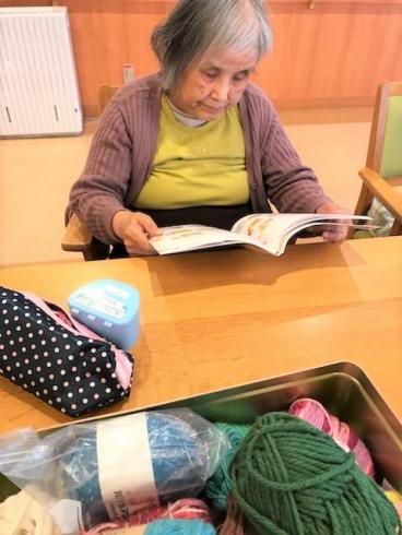 毛糸の色を決めるのも「これにしようかな」「私はピンクが好きー」など、ご自分の好みなどもお話ししながら、一緒に楽しく取り組まれていました!