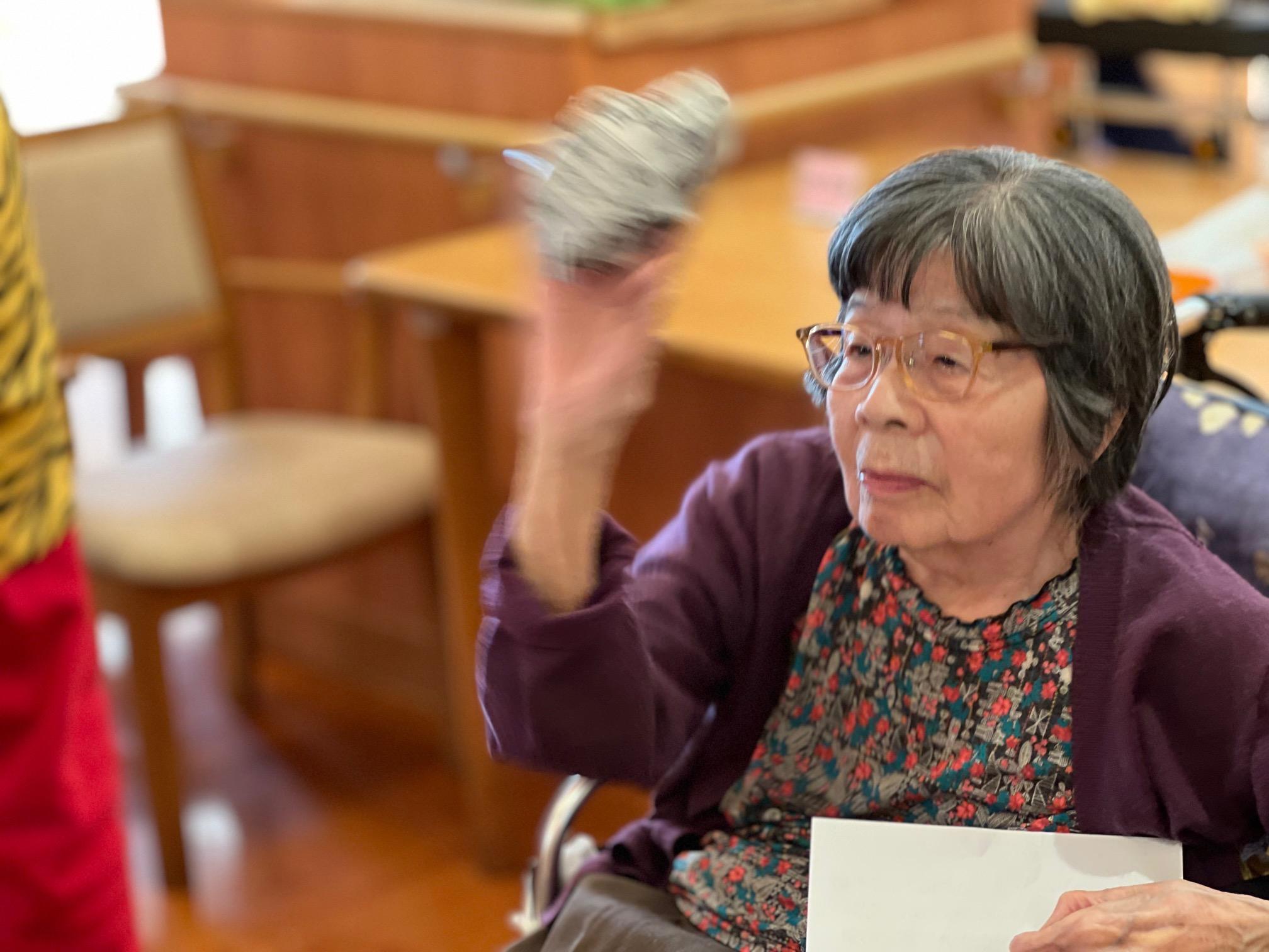 連続写真でお見せしたい5階さんの豆まきの様子でした!