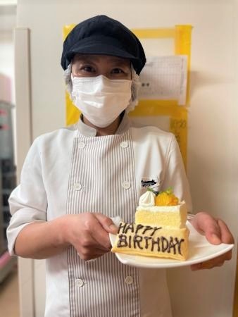 こんにちは!毎月1日は、その月のお客様の誕生日をお祝いするために、ケーキをご用意しています。