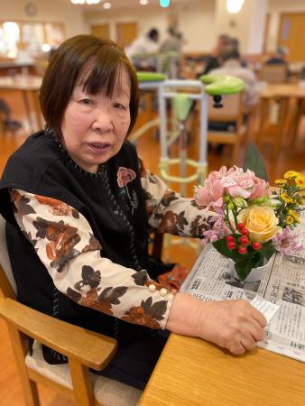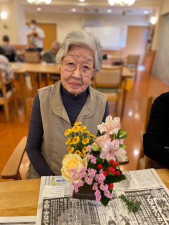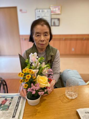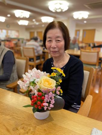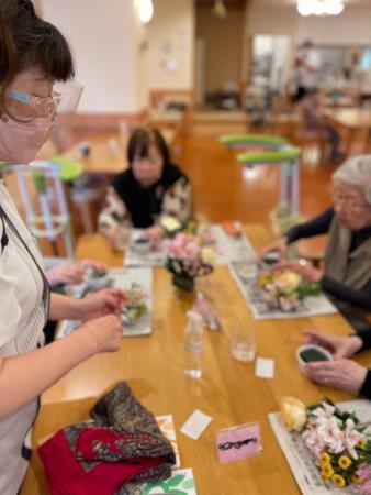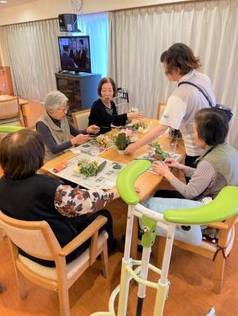 本日フラワーアレンジメントがありました。希望されるお客様が参加されています。