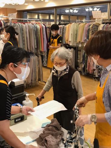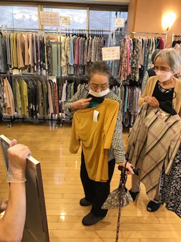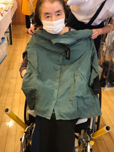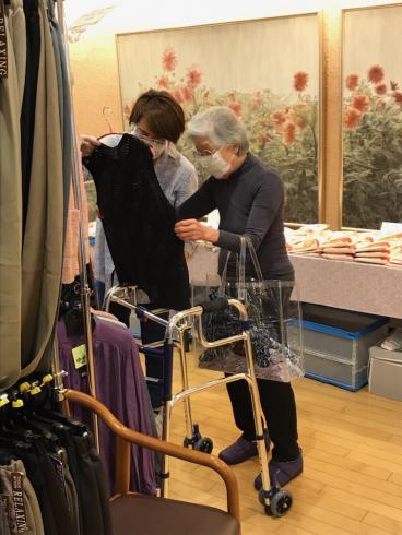 あるお客様は購入した商品を早速着られて、ファッションフェアの片づけのタイミングでスタッフと店員方に見せに来てくださいました。