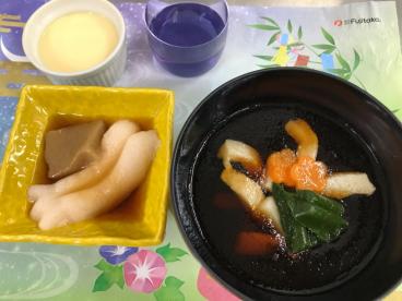 七夕の日のおやつは、星の形が可愛らしい和菓子でした。(上記こだわりゼリーです)