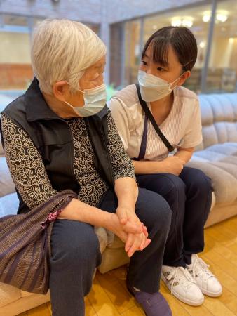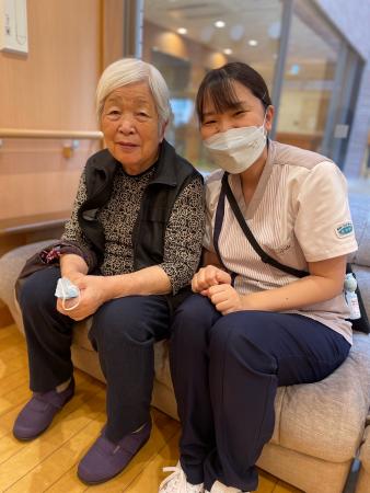 (と、お一人だったので通りかかった看護師が横に座って楽しくお話し中の姿)