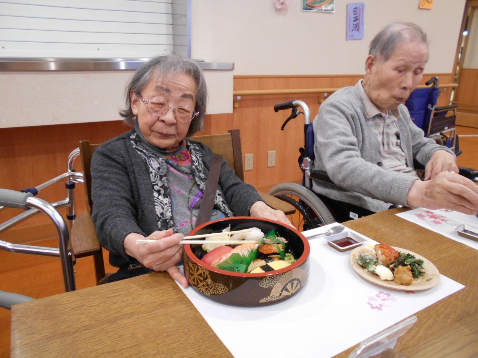 事前にちらし寿司と握り寿司から選んでいただき、アルコールといっしょに食事を楽しまれました。