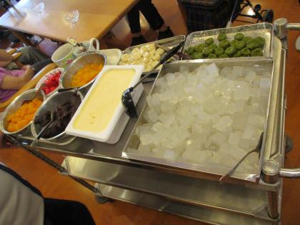 準備されたあんみつセットが、お店のバイキングみたいですね!