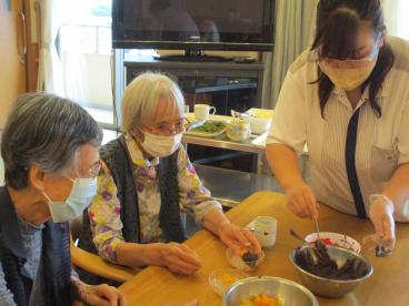 スタッフが企画し、お客様も参加出来る手作りおやつを考え、定期的に開催しています!