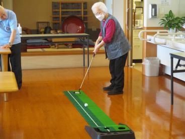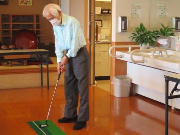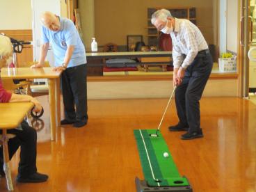 6階に伺うと、昔を彷彿させるような真剣なまなざしで、久しぶりにパターゴルフを楽しまれていました。