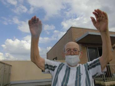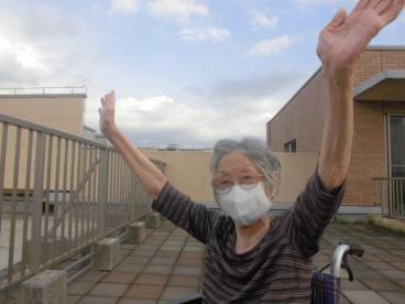 「外の空気を吸うと気持ちが良い」と皆様仰っており、大きく体も動かしながら、外気浴を楽しまれていました。