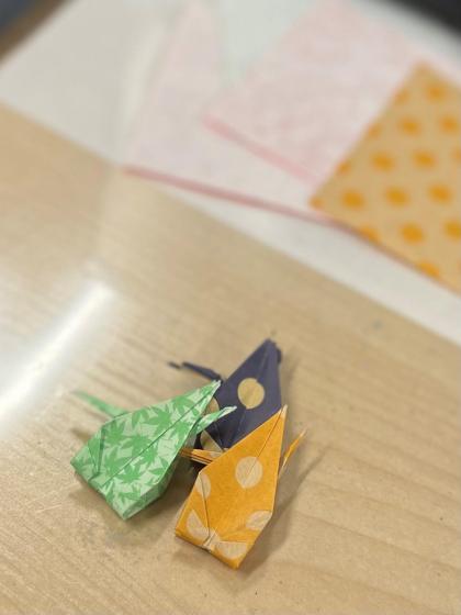 プレゼントのラッピング用に、事務所総出で折っていました。