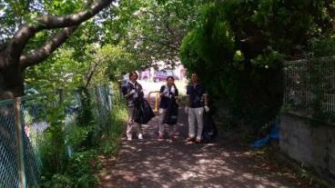 「川をキレイにする」をテーマに、ごみ拾いはもちろんですが川沿いの道には、手作りのポスターが掲示されています。