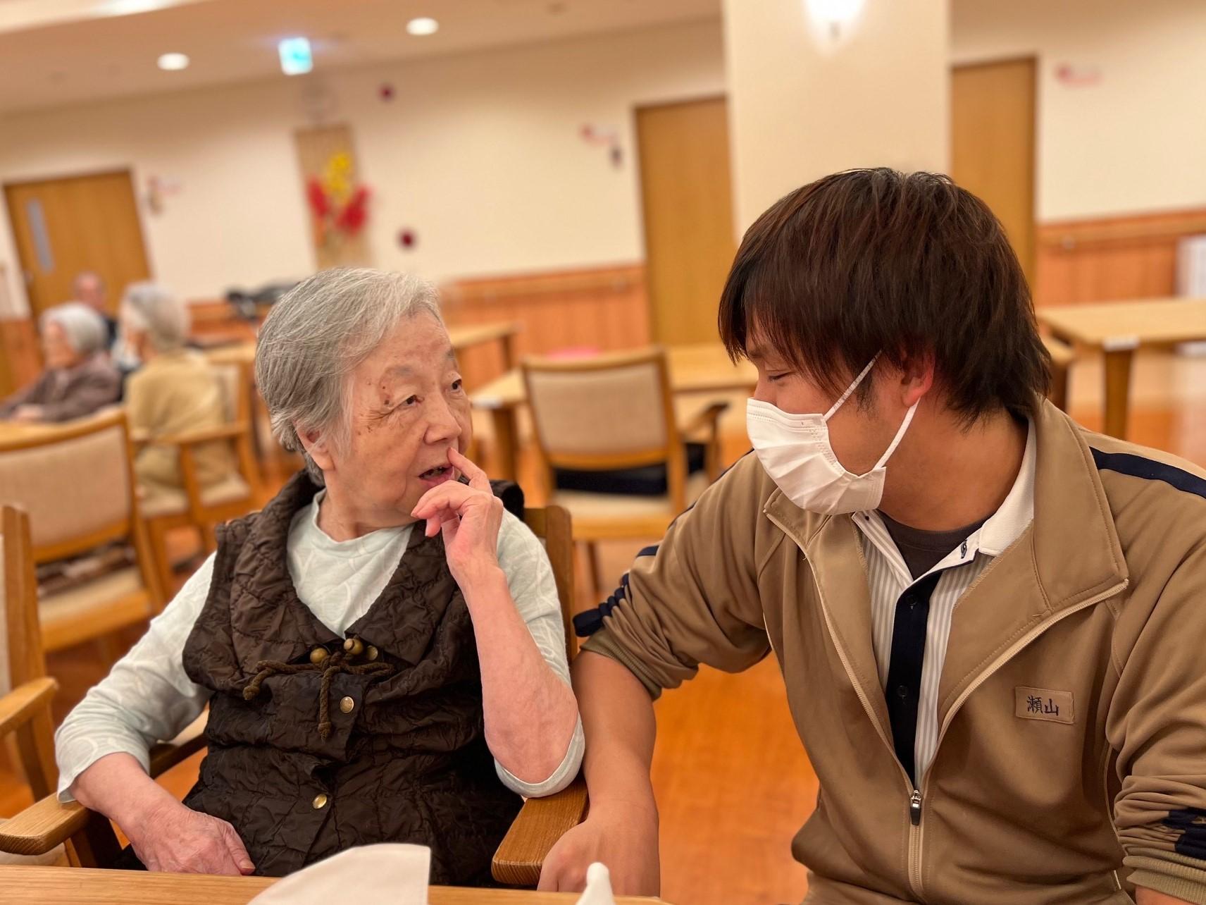 そこへ男性スタッフがやってきて目線を合わせ、「○○さんこんにちは!今日の調子はいかがですか?」とお声掛けをしました。