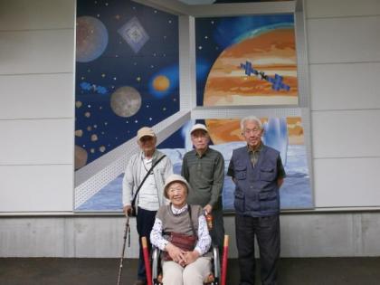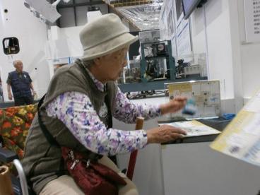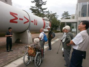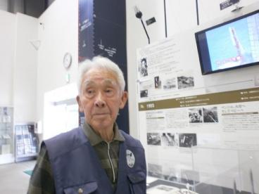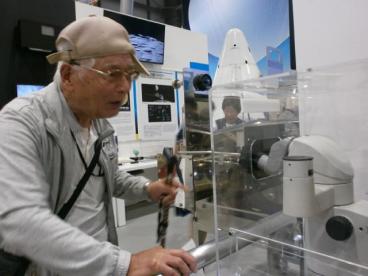 ロケットを眺めて、実物のロケットの大きさを感じ、宇宙の石を顕微鏡で覗いて「お~お~」と感嘆の声を上げられていました。