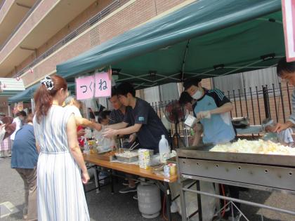 食べ物の屋台(いなり寿司・焼きそば・わたあめ・カレースープ)や、遊べる屋台(ヨーヨーや輪投げ)を設営させて頂き、お客様とご家族が一緒になって楽しめるよういたしました。