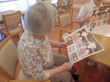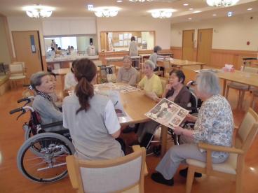 懐かしい絵画や写真を見て、思い出話などを広げていく「回想法」を実施しています。