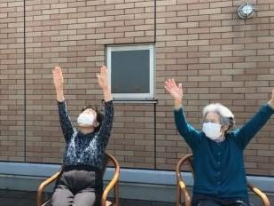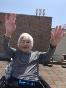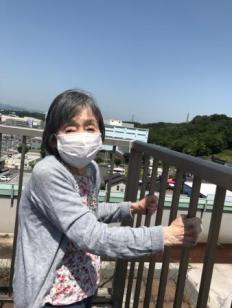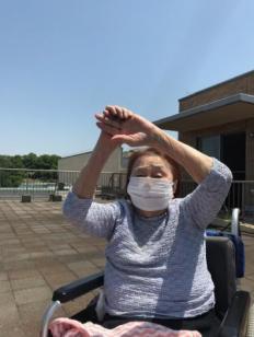 雨の合間をぬって晴天の心地の良い時間帯に担当の機能訓練指導員が誘導し、少人数で屋上にて外気浴を行いました!